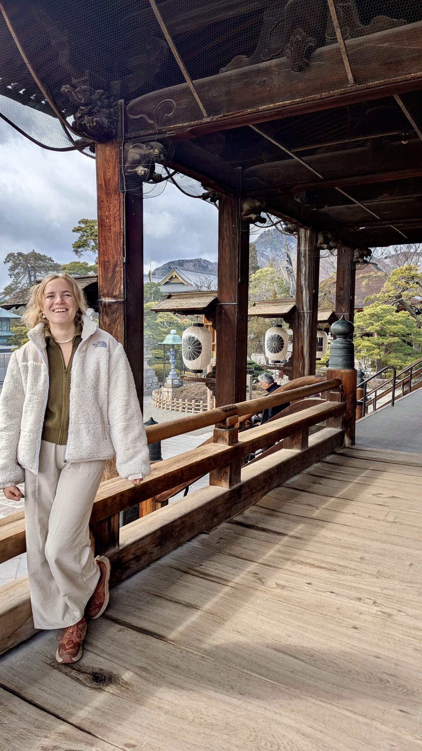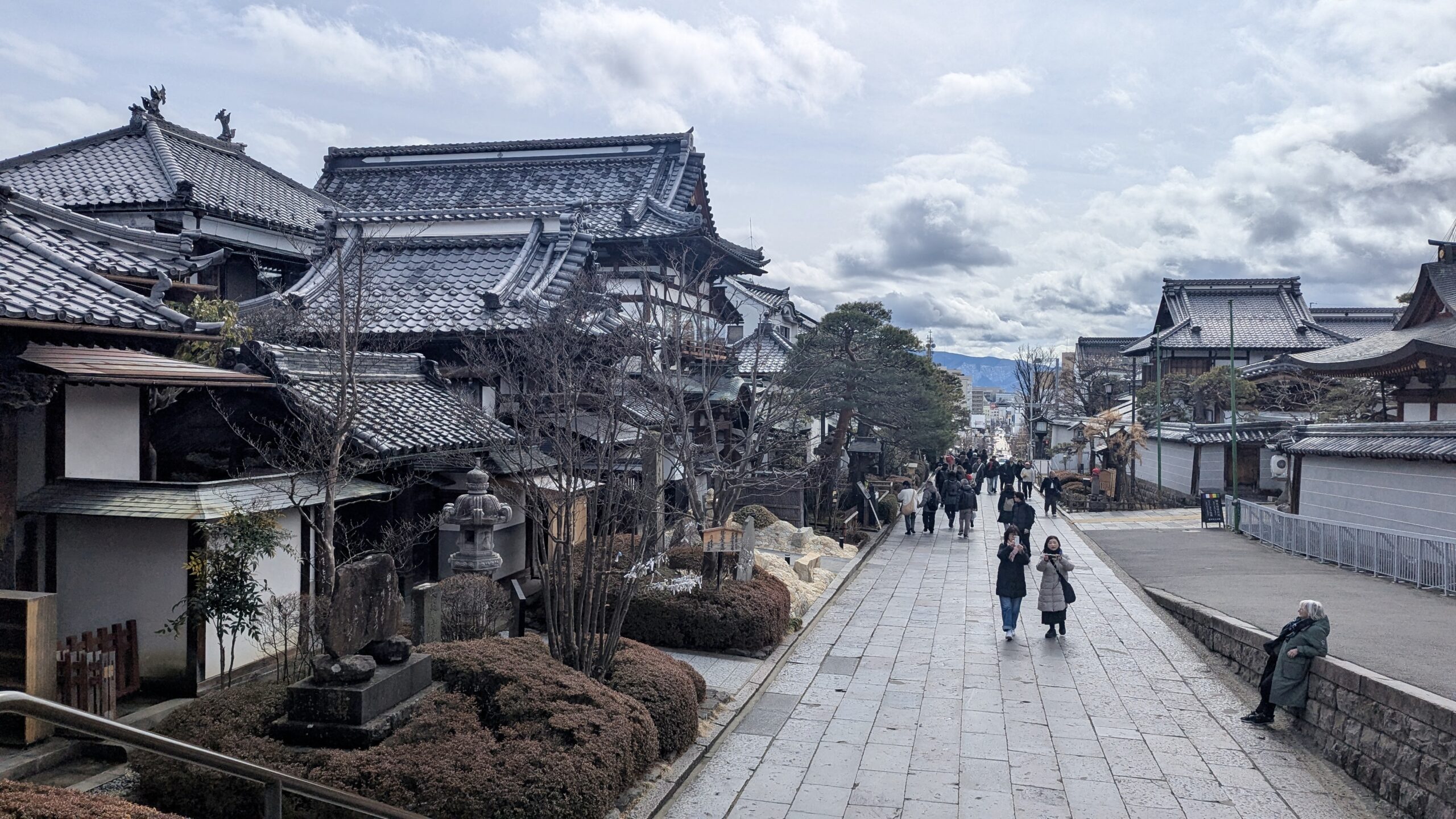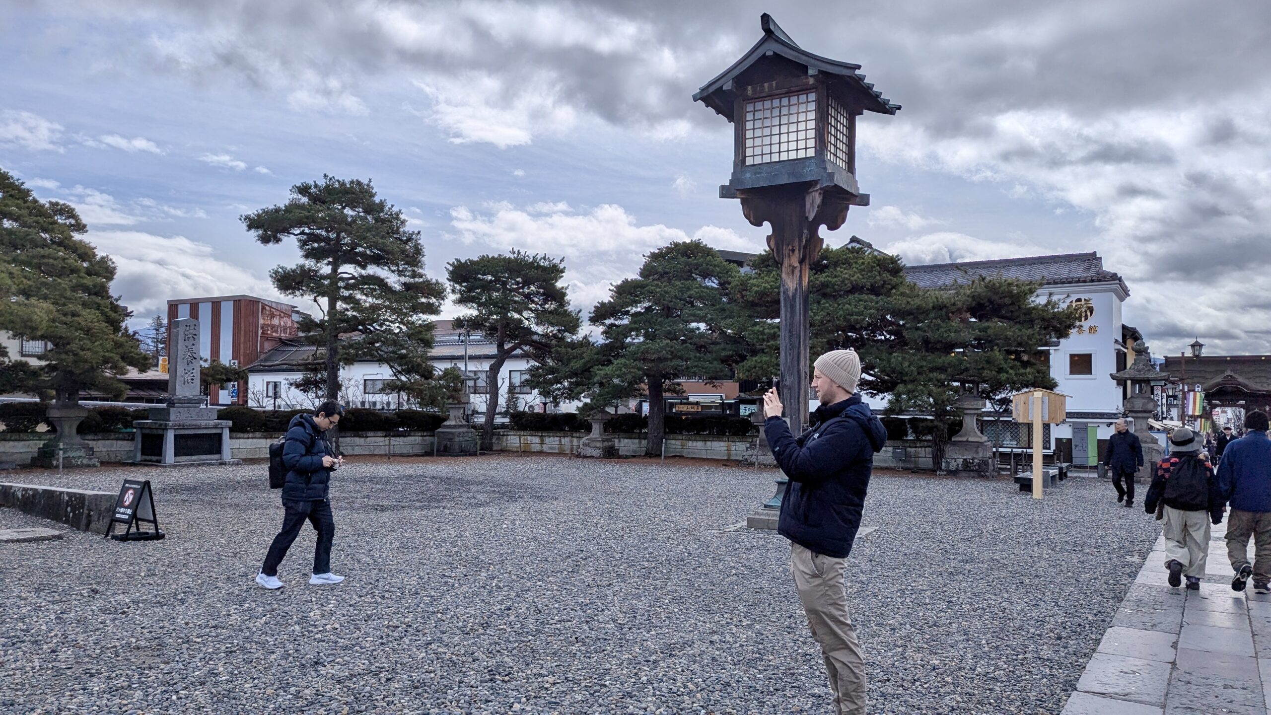 Unseren letzten Tag verbrachten wir in Nagano selbst, da es am Vortag geregnet hatte, aber heute blieb der Regen aus. Also besuchten wir den örtlichen Tempel und erkundeten die Umgebung. Auch hier sammelte ich wieder ein paar Stempel, wir fanden leckere kleine Snacks, die wir genossen, und besuchten danach ein Einkaufszentrum, als sich der Himmel wieder zuzog und der Regen einsetzte.