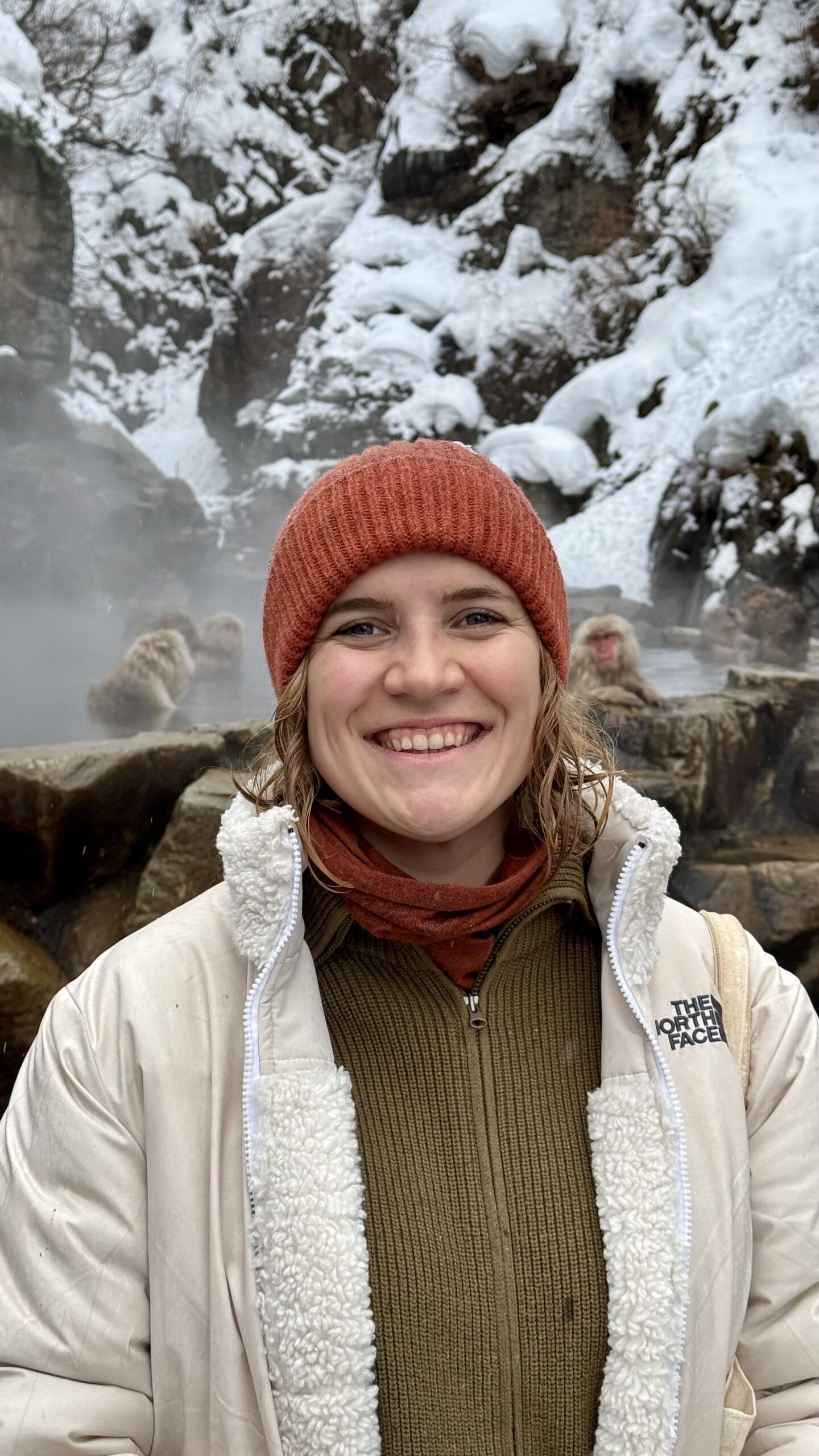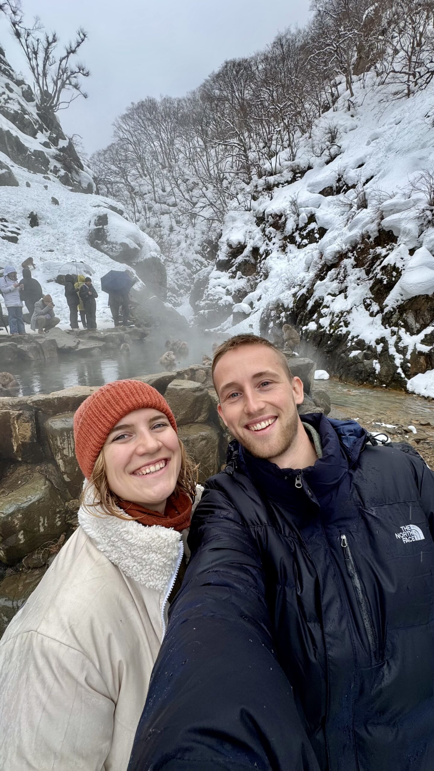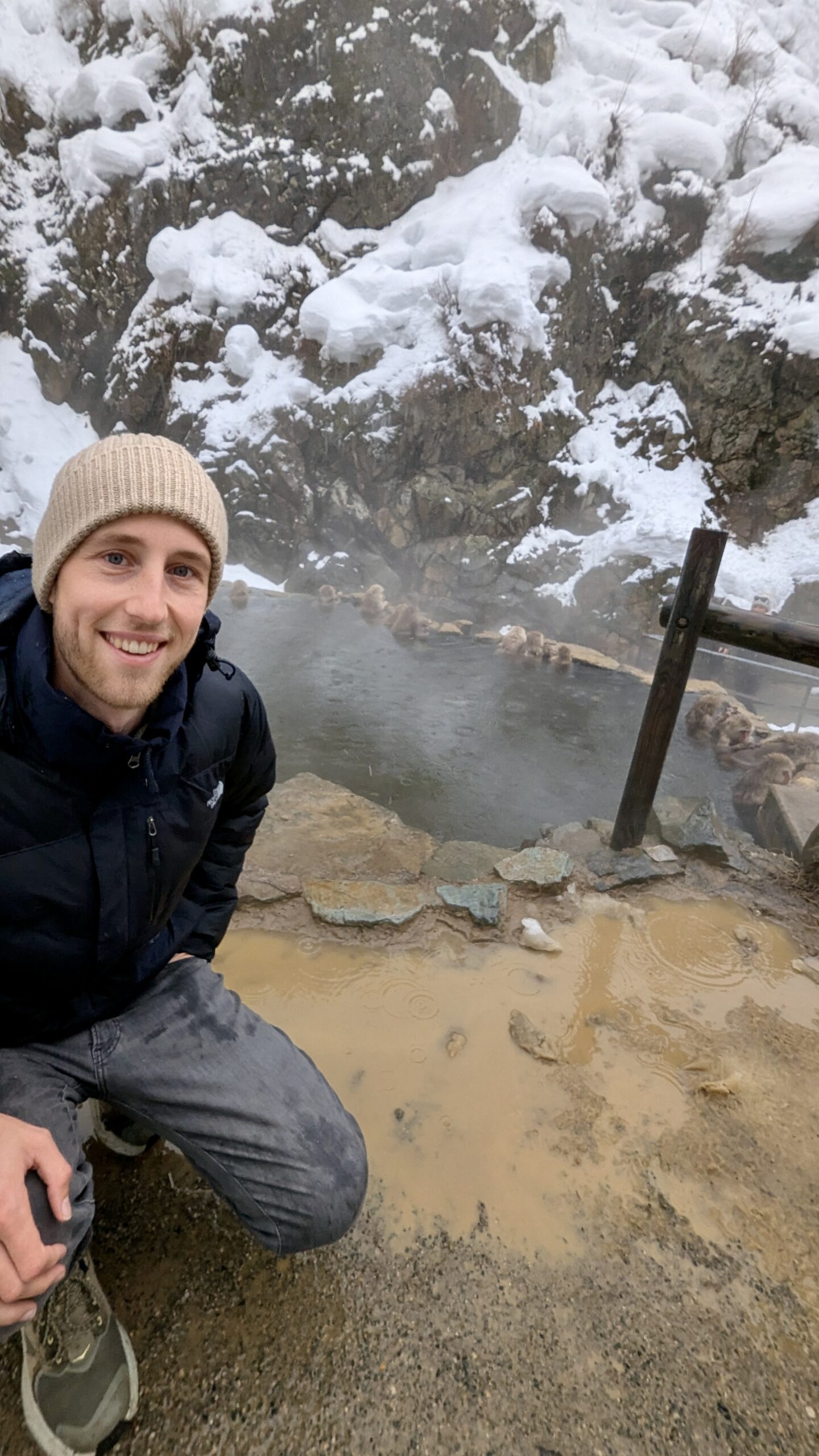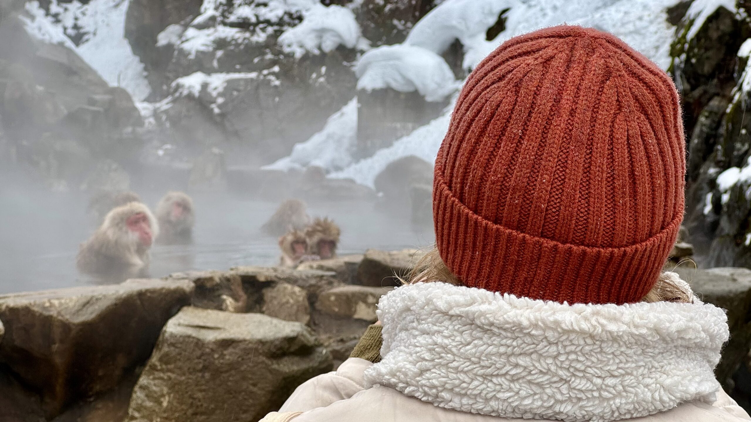 Bei den Affen angekommen, standen wir im Regen und beobachteten, wie sie vollkommen entspannt in den 35°C heißen Quellen saßen. Sie ignorierten die Menschen um sich herum und ließen es sich einfach gut gehen.