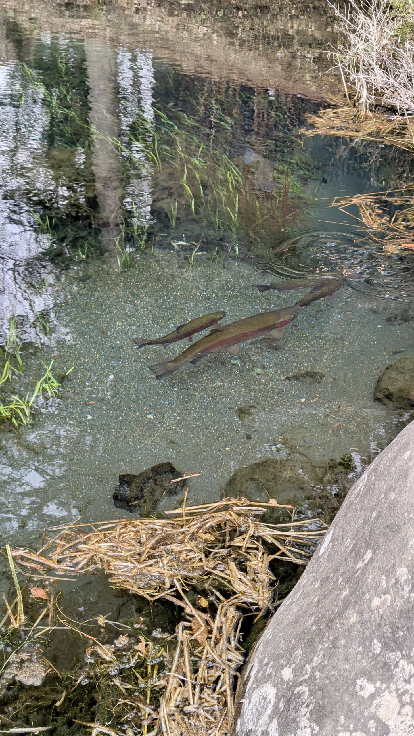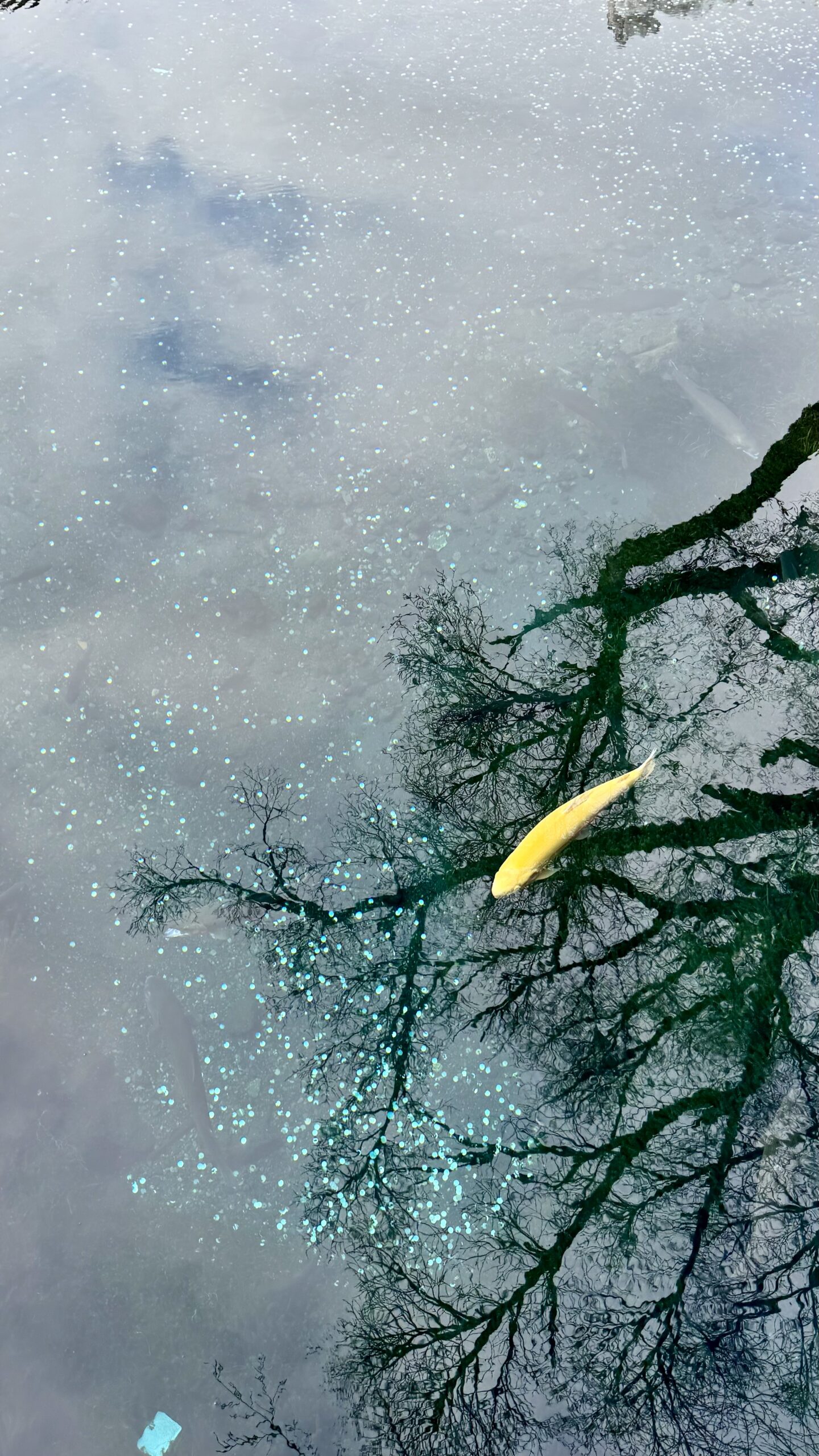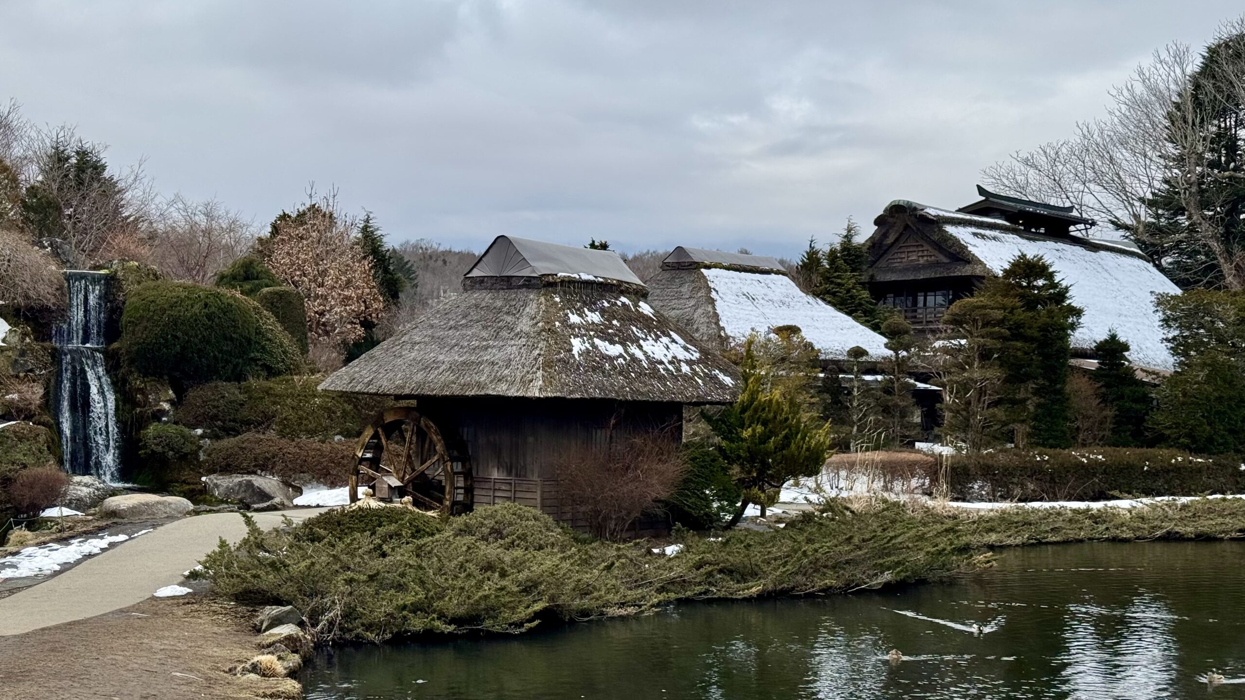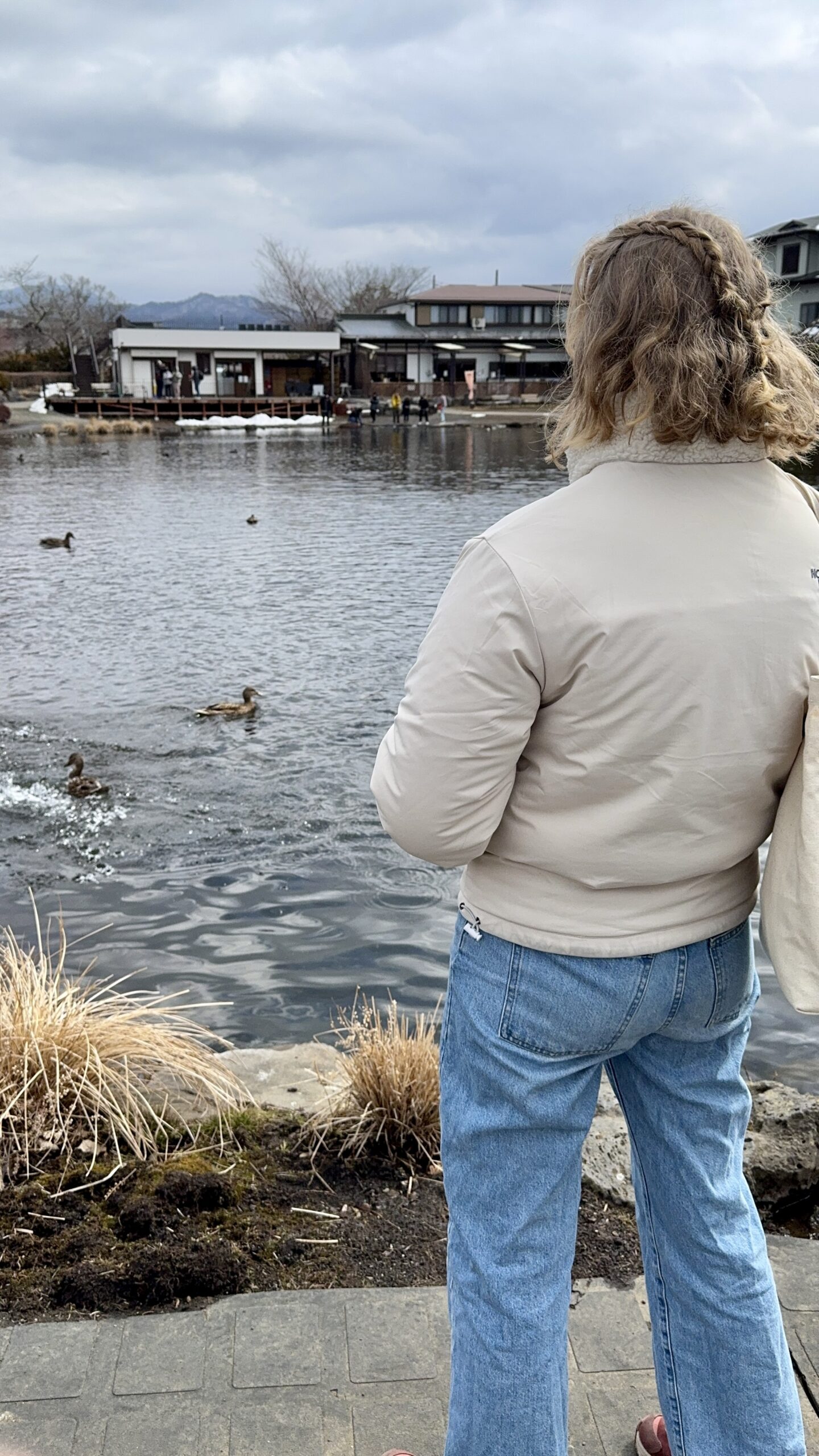 Mit ihrem Mann zusammen fuhren wir nach Oshino Hakkai, der Ort, der für seine 8 Seen bekannt ist, in denen sich der Fuji bei gutem Wetter wunderschön spiegeln kann. Aber das Wetter wollte nicht mitmachen, es war immer noch grau, obwohl wir 2 Stunden im Auto gesessen hatten. Aber Yuri gab die Hoffnung nicht auf und zeigte uns die verschiedenen kleinen Seen. Das war vor langer Zeit mal ein großer See gewesen, aber durch die Ausbrüche des Fuji waren Steinbrocken heruntergekommen, die die Landschaft verändert haben und so 8 kleine Seen und Tümpel erschaffen haben, um die sich mittlerweile ein ganzes Dorf erhoben hat.