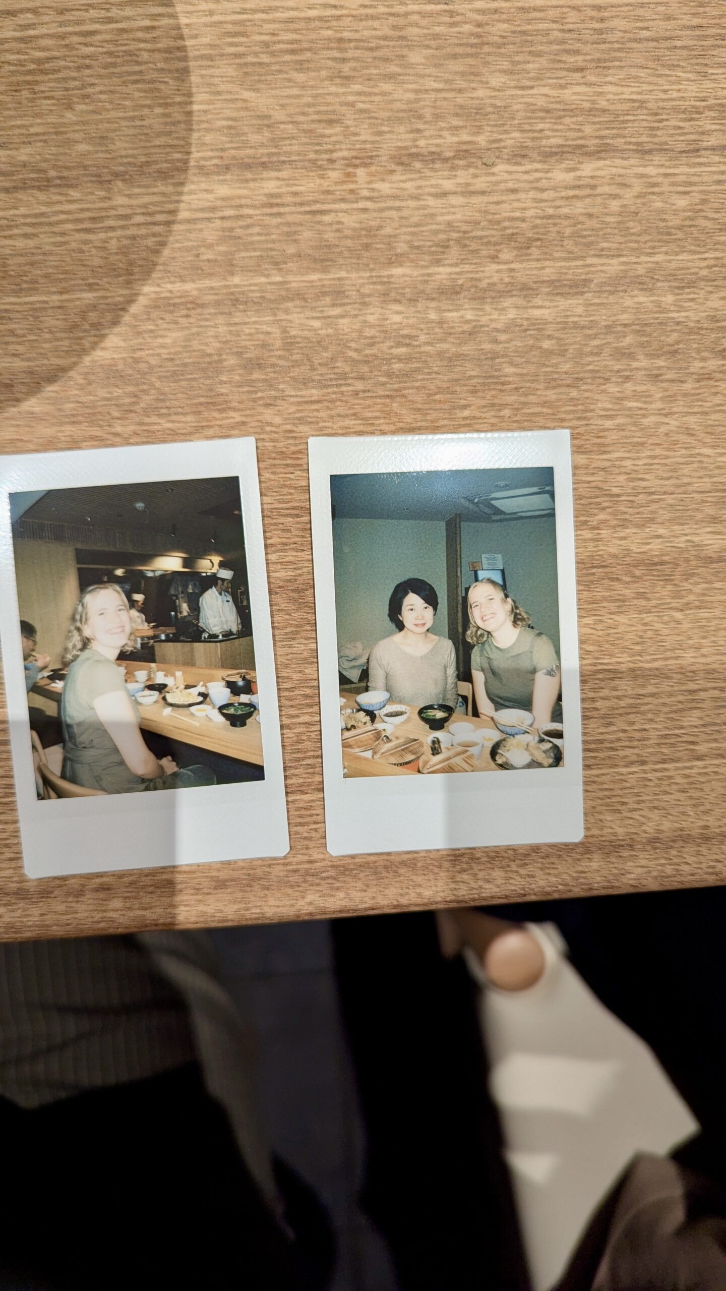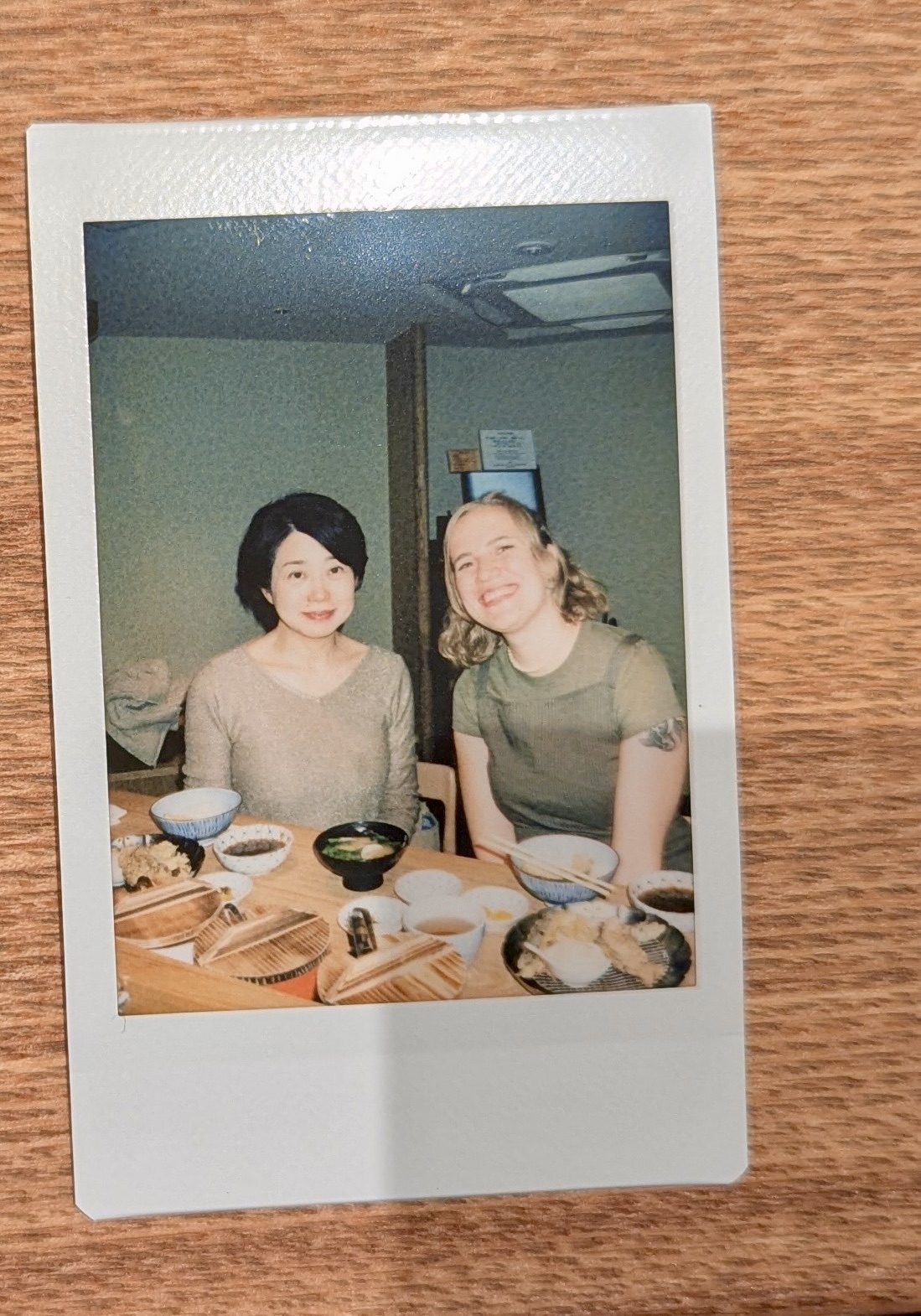 Danach beschloss sie, dass sich der Aufwand für nur zwei Personen nicht lohnen würde zu kochen, und führte mich zu ihrem neuen Lieblingsrestaurant, das Tempura anbietet. Ich ließ mich darauf ein, auch wenn der Großteil des Essens aus Fisch bestand. Außerdem packte sie ihre Polaroid-Kamera aus und machte neue Erinnerungsfotos für ihr Fotoalbum und auch für mich.
