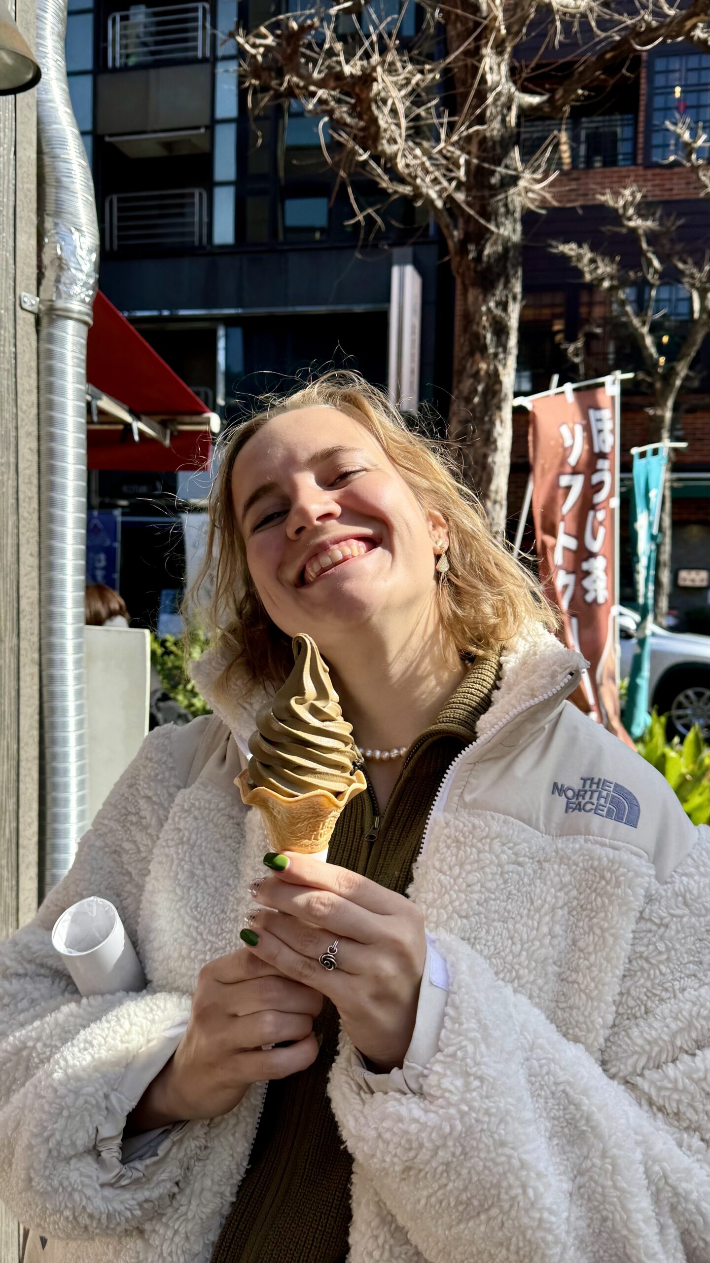 Von hier aus ging es dann zu Yuris Lieblings-Teeladen, wo man Eis aus japanischem Tee essen kann. Sascha und ich teilten uns eines, während Yuri uns weiter durch die Gegend zum nächsten Schrein führte.