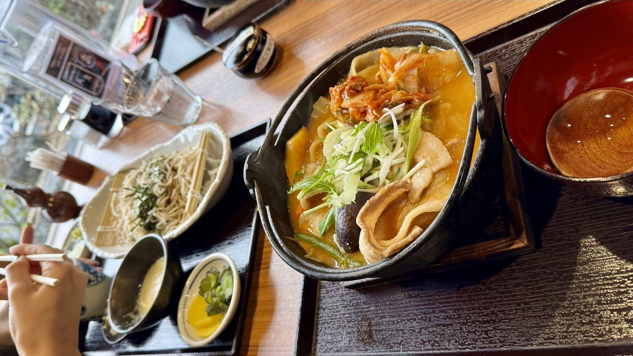 Dennoch, wir alle waren ein kleines bisschen enttäuscht, als wir wieder ins Auto stiegen und uns auf den Weg zu einem Restaurant machten, das in dieser Gegend für sein „Hoto“ bekannt ist: lange, dicke Nudeln in scharfer Suppe mit Gemüse, präsentiert im kochenden Tontopf.