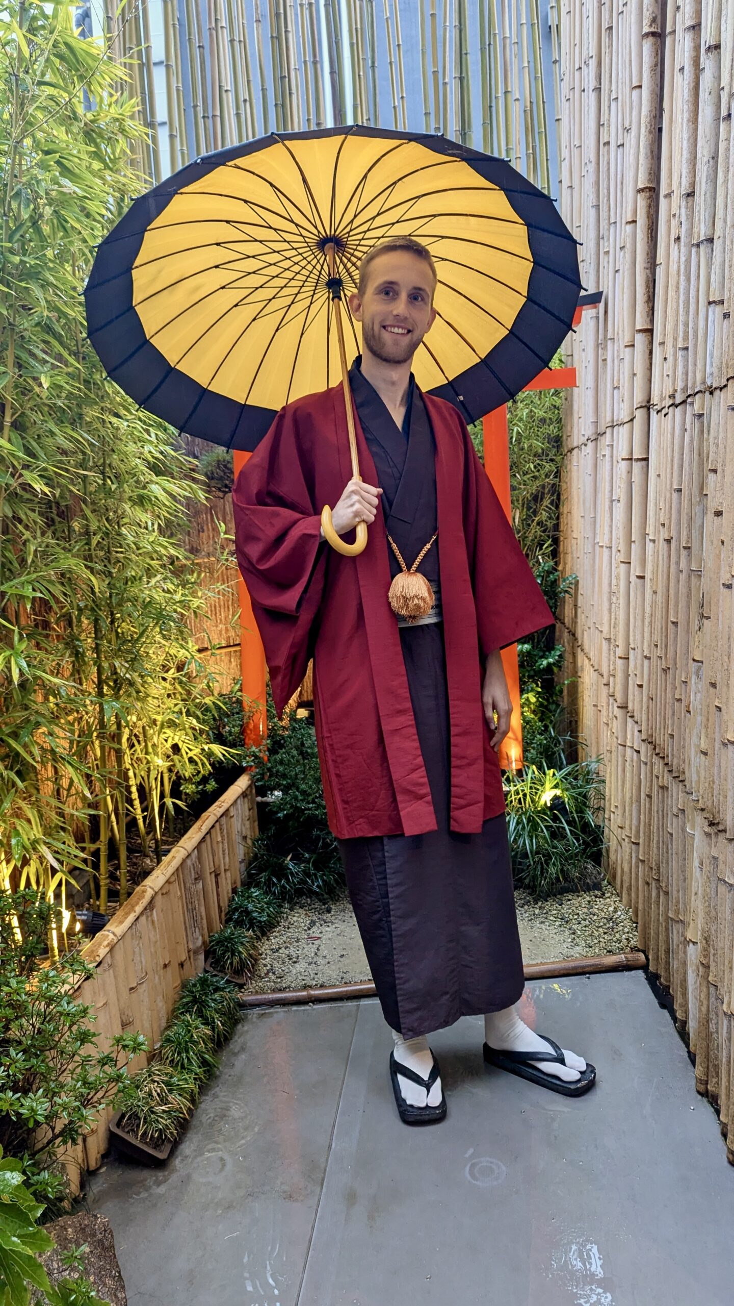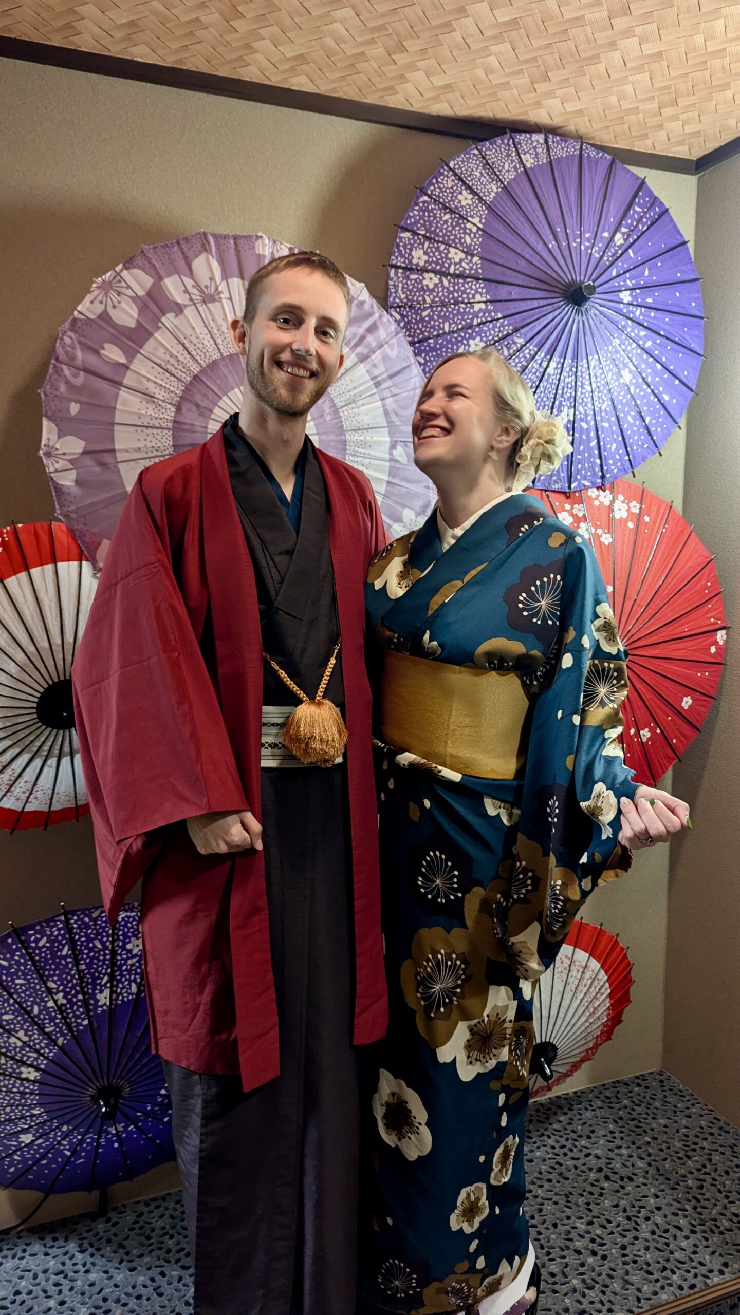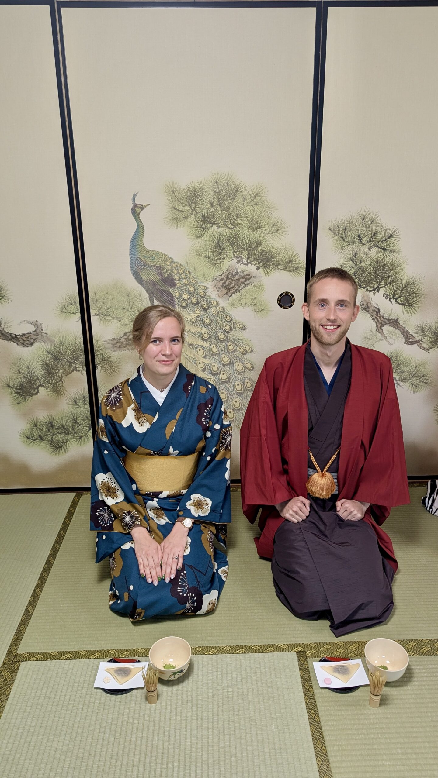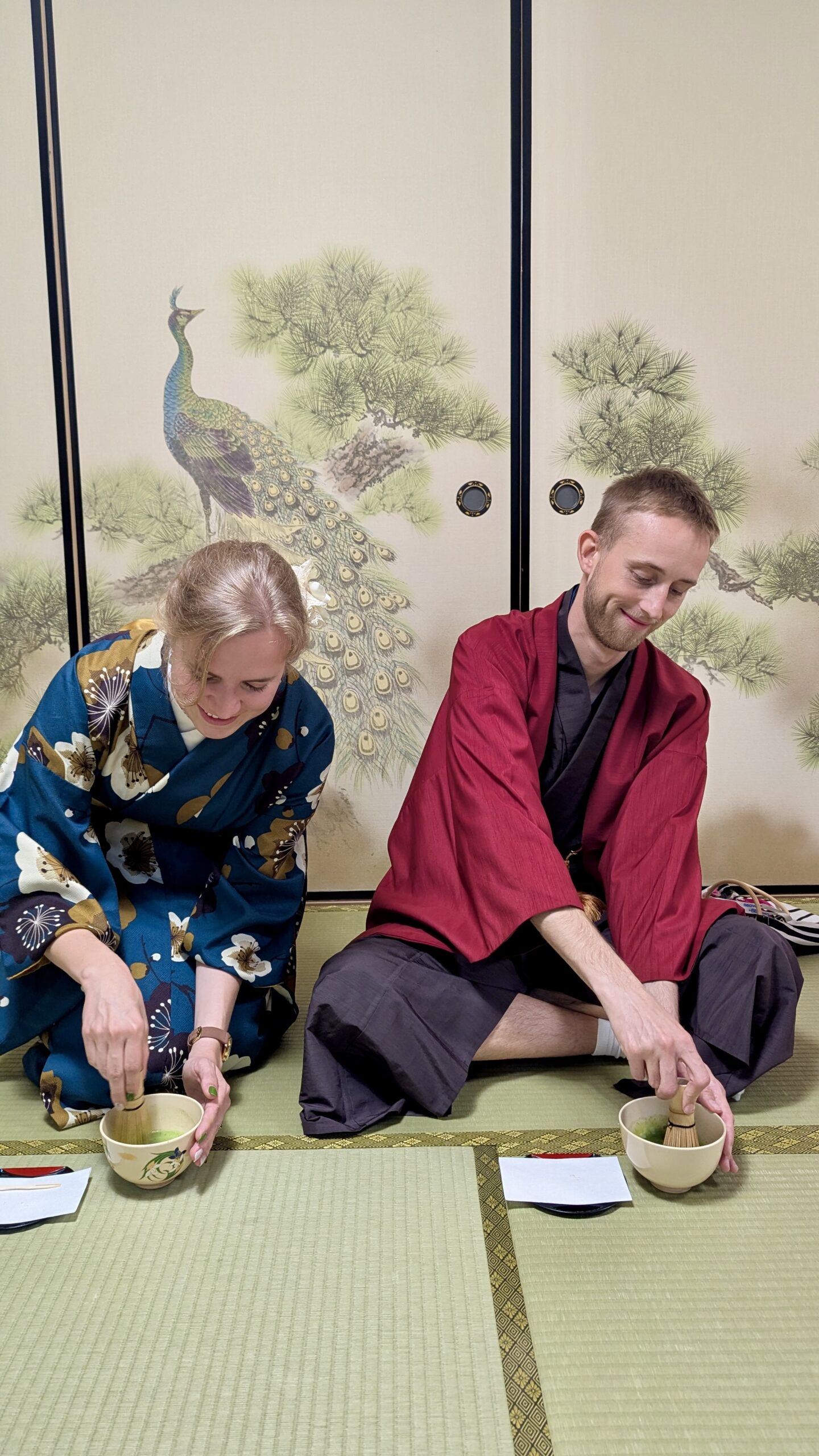 Mit den Kimonos war es nur ein bisschen unbequem, haha, aber trotzdem eine sehr coole Erfahrung, seinen eigenen hochwertigen Matcha zuzubereiten. Jedoch ging es Sascha danach wieder richtig schlecht, und wir beeilten uns, zurück ins Hotel zu kommen.