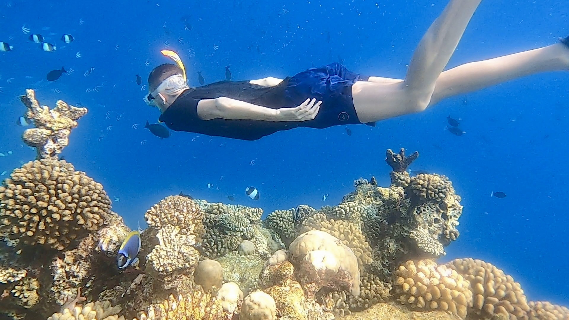 Das Riff, zu dem uns Hassan brachte, war wohl das schönste, das wir bisher gesehen hatten. Es war noch viel bunter und lebendiger als die anderen Riffe, die wir besucht hatten. Schwärme von Fischen zogen um uns herum und in einer unglaublichen Vielfalt – einfach atemberaubend! Dennoch hielt ich die ganze Zeit Ausschau nach den Triggerfischen. Mein Respekt vor diesen Tieren war nun einfach zu groß, nachdem ich erlebt hatte, wie heftig sie zubeißen können. 😅