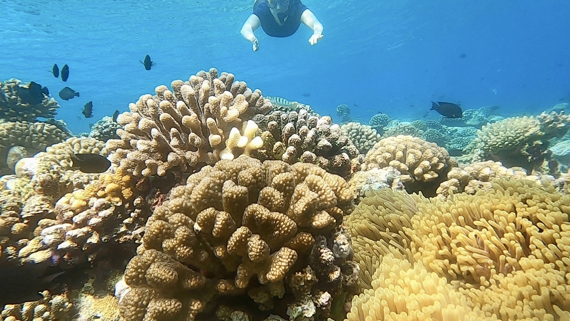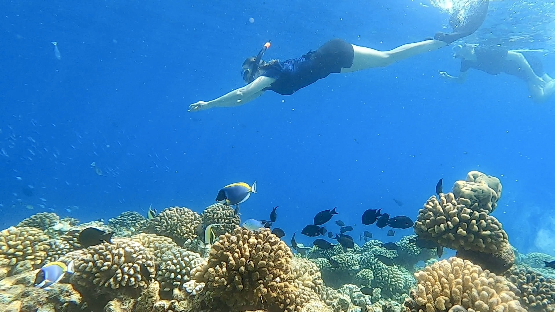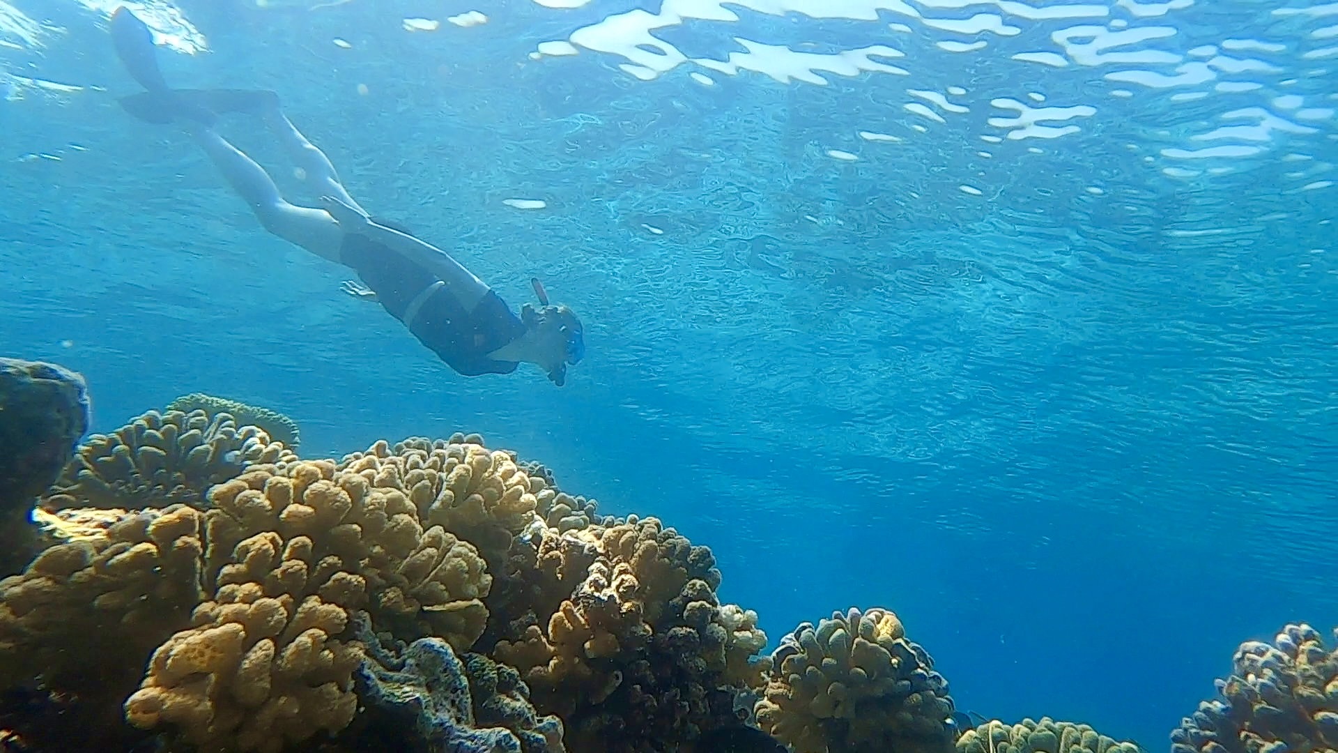 Da Ray an diesem Tag mit unangenehmem Druck auf den Ohren zu kämpfen hatte und das Tauchen aussetzen musste, schlug Ester vor, dass wir zu dritt am Hausriff schnorcheln gehen, während Ray sich am Strand entspannte.