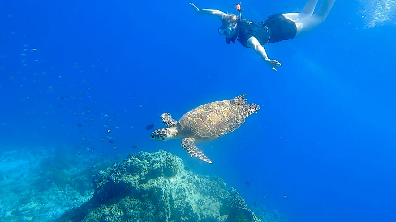 Ester rief mir sofort hinterher, ich solle schnell wegschwimmen – denn der Titan-Triggerfish gibt nicht so leicht auf. Mit einem Adrenalinschub strampelte ich panisch los, während mir der Schock tief in den Knochen saß.