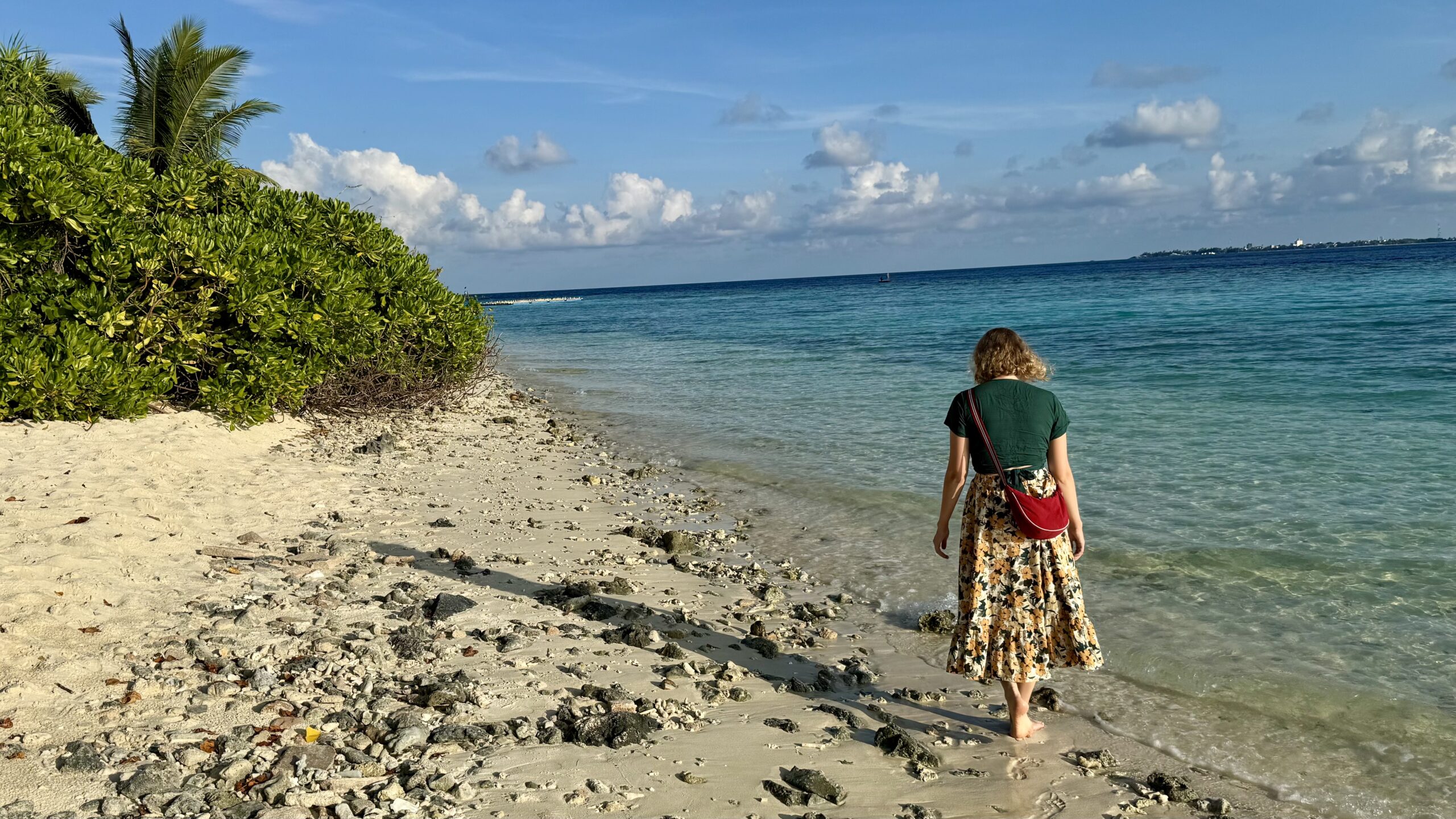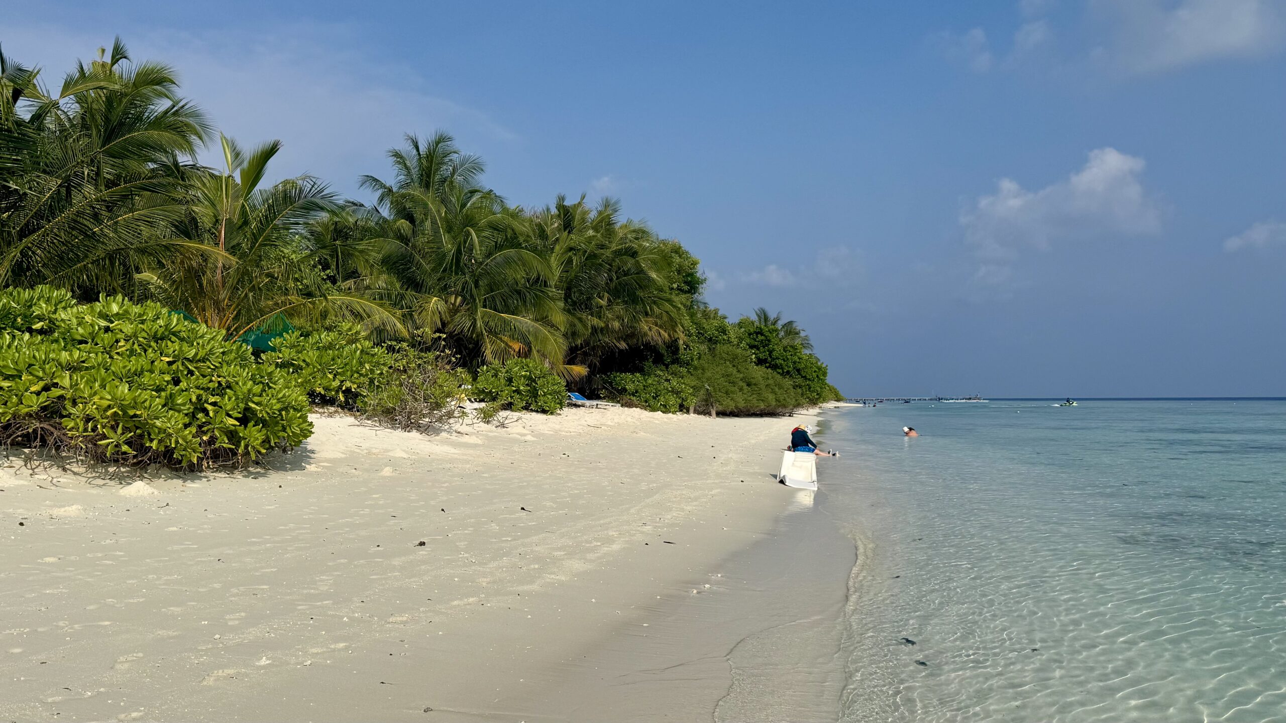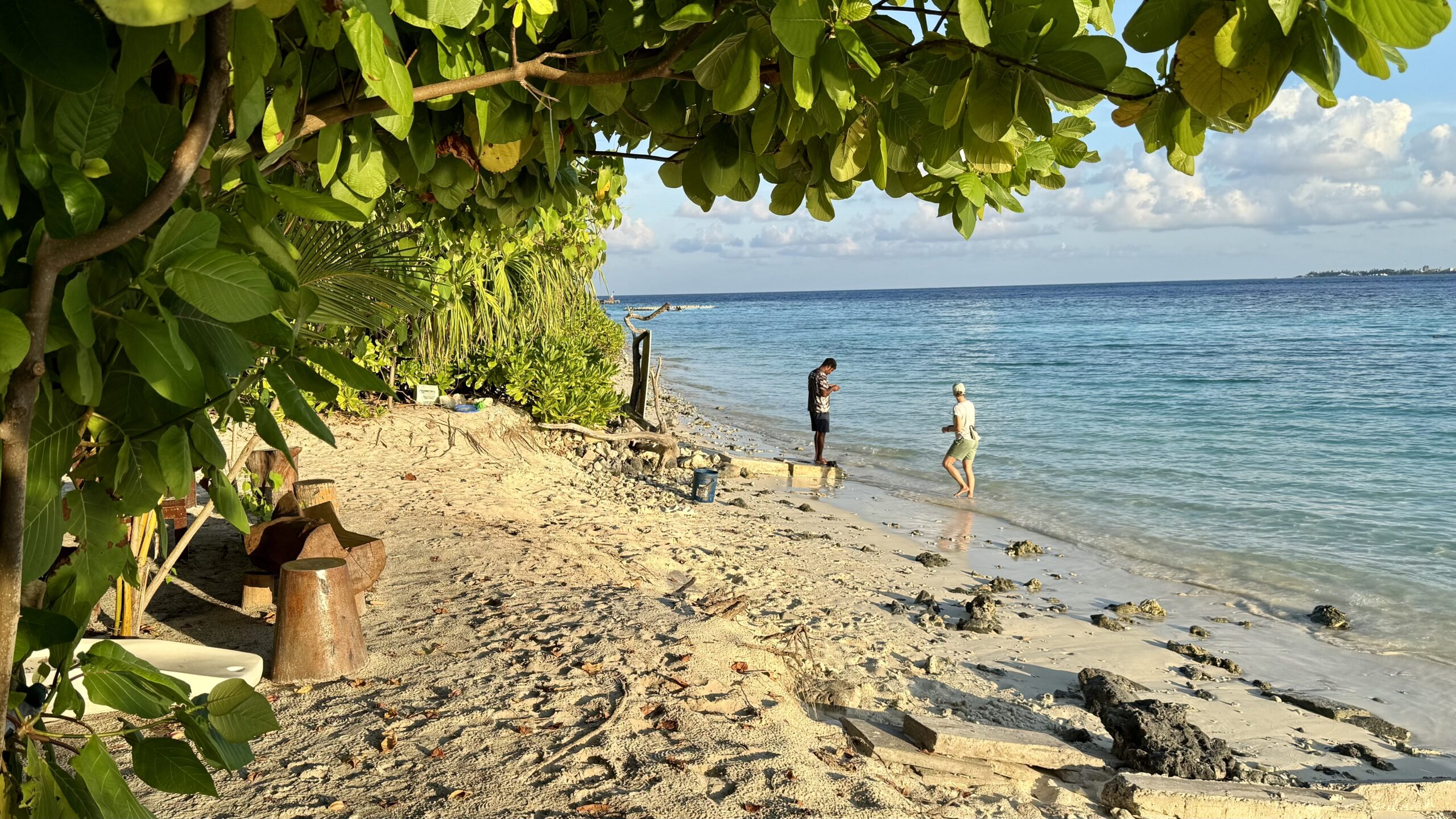 Ich möchte nicht sagen, dass wir es nicht bedauerten, von Omadhoo abzureisen. Die Insel, insbesondere das wunderschöne Riff und unser Gastgeber Hassan, haben unsere Erholung auf ein ganz neues Level gehoben. Wir wussten bereits, dass es auf der nächsten Insel, die wir besuchten, nicht mehr so ein großes Hausriff geben würde. Dafür konnte die Insel jedoch mit kilometerlangen Sandstränden punkten.
