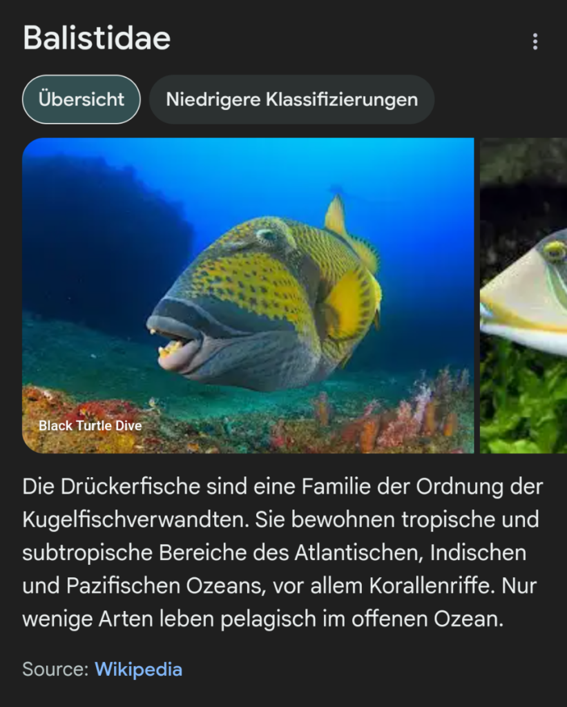Aber es sind halt eben nicht nur “nervige” Fische die mir Angst einjagen: Drückerfische spielen eine entscheidende Rolle für das ökologische Gleichgewicht eines Korallenriffs. Sie regulieren die Population von Seeigeln, die bei übermäßiger Vermehrung Korallen stark schädigen können. Zudem ernähren sie sich von Schnecken, Krebstieren und anderen wirbellosen Tieren, wodurch sie die Artenvielfalt erhalten und das Riff vor Überwucherung schützen. Durch ihr Graben im Sand tragen sie zur Durchmischung von Sedimenten bei und setzen Nährstoffe frei. Als wichtige Räuber verhindern sie zudem das übermäßige Wachstum einzelner Arten und fördern so die Stabilität des gesamten Riffsystems. Ihr Schutz ist daher essenziell für die Gesundheit und das langfristige Bestehen der Korallenriffe.