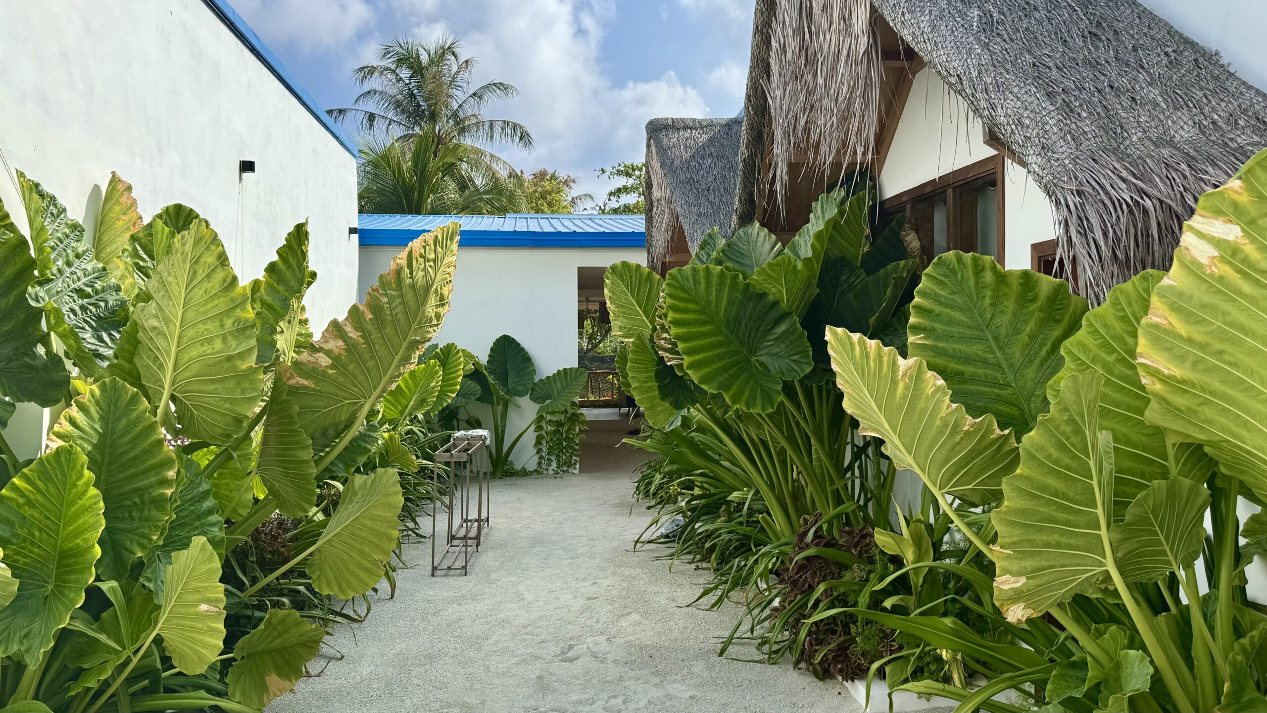 Und dann kamen wir auf Dhigurah an. Mit 3 km Länge auf 275 m Breite ist sie definitiv mehr lang als breit. Und mit 610 Einwohnern weniger dicht besiedelt als Omadhoo, aber deutlich touristischer ausgebaut. Hier reiht sich Hotel an Hotel, an Restaurant, an Hotel. Zudem ist nur ca. 1 km der unteren Spitze richtig besiedelt – je weiter man läuft, desto dschungelartiger wird es und eine lange Sandbank zieht sich nach vorne.