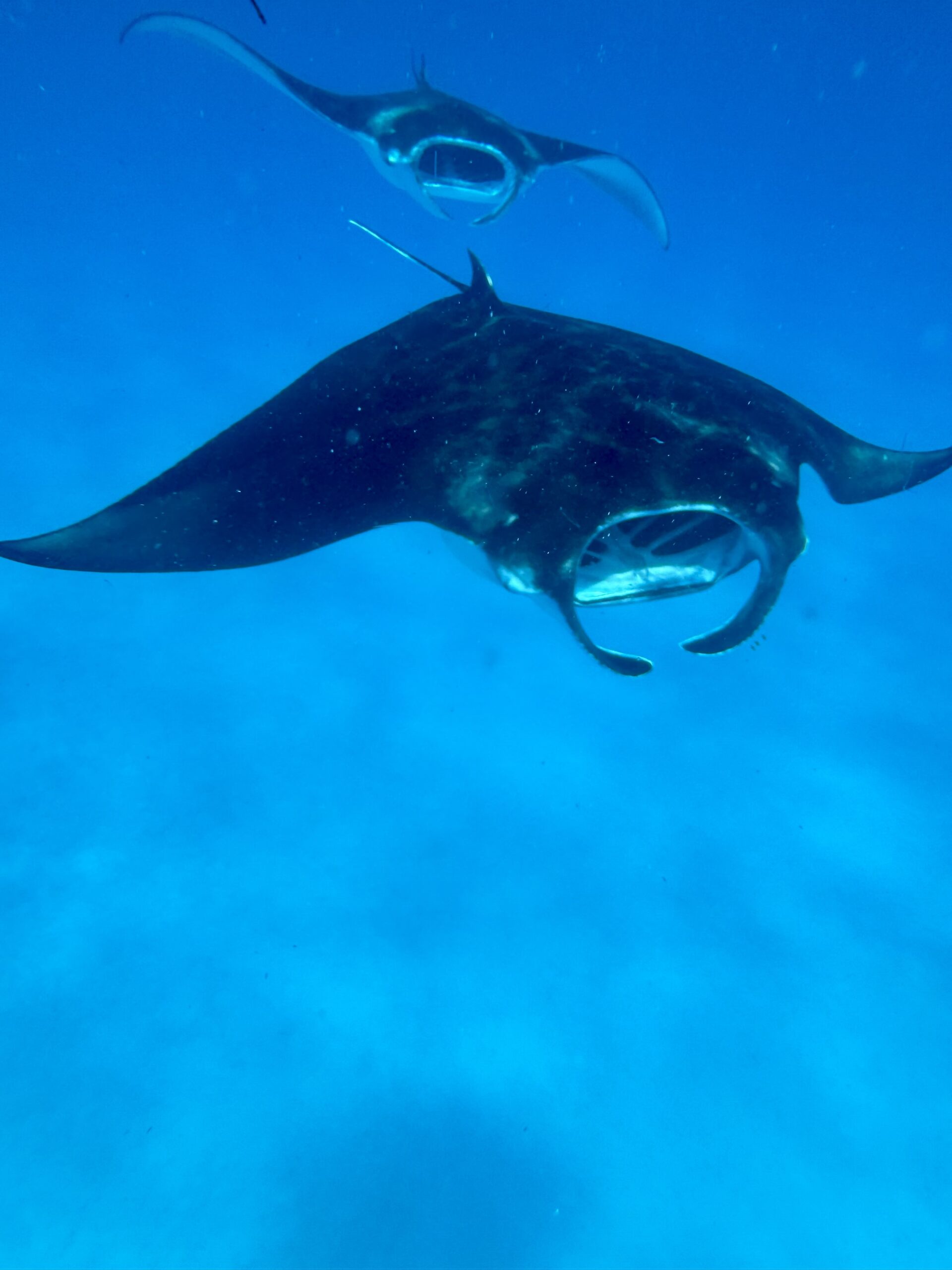 Mantas gehören zu den größten Rochenarten der Welt. Die beeindruckenden Tiere können Flügelspannweiten von bis zu 7 Metern erreichen. Sie sind friedliche Riesen, ernähren sich ausschließlich von Plankton und kleinen Fischen, die sie aus dem Wasser filtern, während sie majestätisch durch das Meer gleiten. Besonders faszinierend: Mantas zeigen oft ein ausgeprägtes Sozialverhalten, besitzen ein gutes Gedächtnis und gelten als besonders intelligent unter den Meeresbewohnern. Dhigurah gehört zu den wenigen Orten der Welt, an denen man das ganze Jahr über die Chance hat, Mantas in freier Wildbahn zu beobachten.