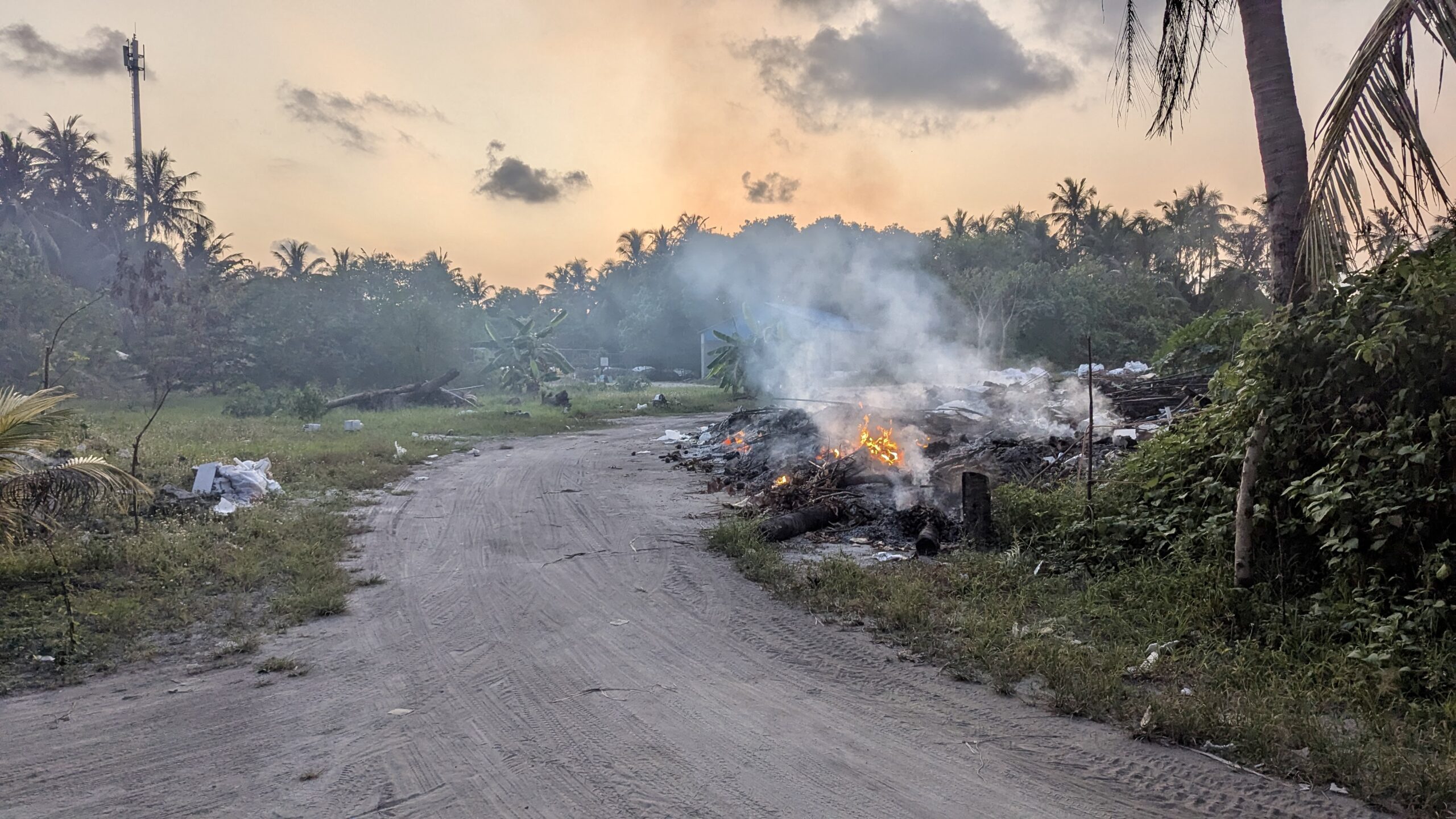 Diese “Deponie” war ein umzäuntes Stück Land in der Inselmitte, wo einfach alles hingeschmissen wird, um es dann letztendlich zu verbrennen. Eine richtige Müllverbrennungsanlage gibt es auf den Malediven nicht. Zwar existiert die künstliche Insel Thilafushi, etwa 6 km westlich von Malé, die offiziell als Müllinsel dient. Ursprünglich war Thilafushi eine Lagune, die 1992 zu einer Deponieinsel umgewandelt wurde. Damals wurde der Müll in große Gruben geschüttet, mit Bauschutt bedeckt und darauf Korallensand verteilt. Heute wird dort zumindest teilweise Müll getrennt und verbrannt. Dennoch landet der Großteil des Abfalls immer noch ungeschützt in der Natur – darunter auch gefährliche Stoffe wie Elektroschrott oder asbesthaltige Materialien. Die Müllverarbeitung übernehmen etwa 150 Gastarbeiter aus Bangladesch unter teils schlechten Bedingungen. Die Insel wächst stetig – Berichte sprechen davon, dass sie einst täglich um etwa einen Quadratmeter zunahm. Trotz vereinzelter Bemühungen ist die Müllentsorgung dort nach wie vor stark umweltbelastend, und viele kleinere Inseln kümmern sich daher selbst um die Entsorgung – meist durch Verbrennen des Mülls vor Ort.