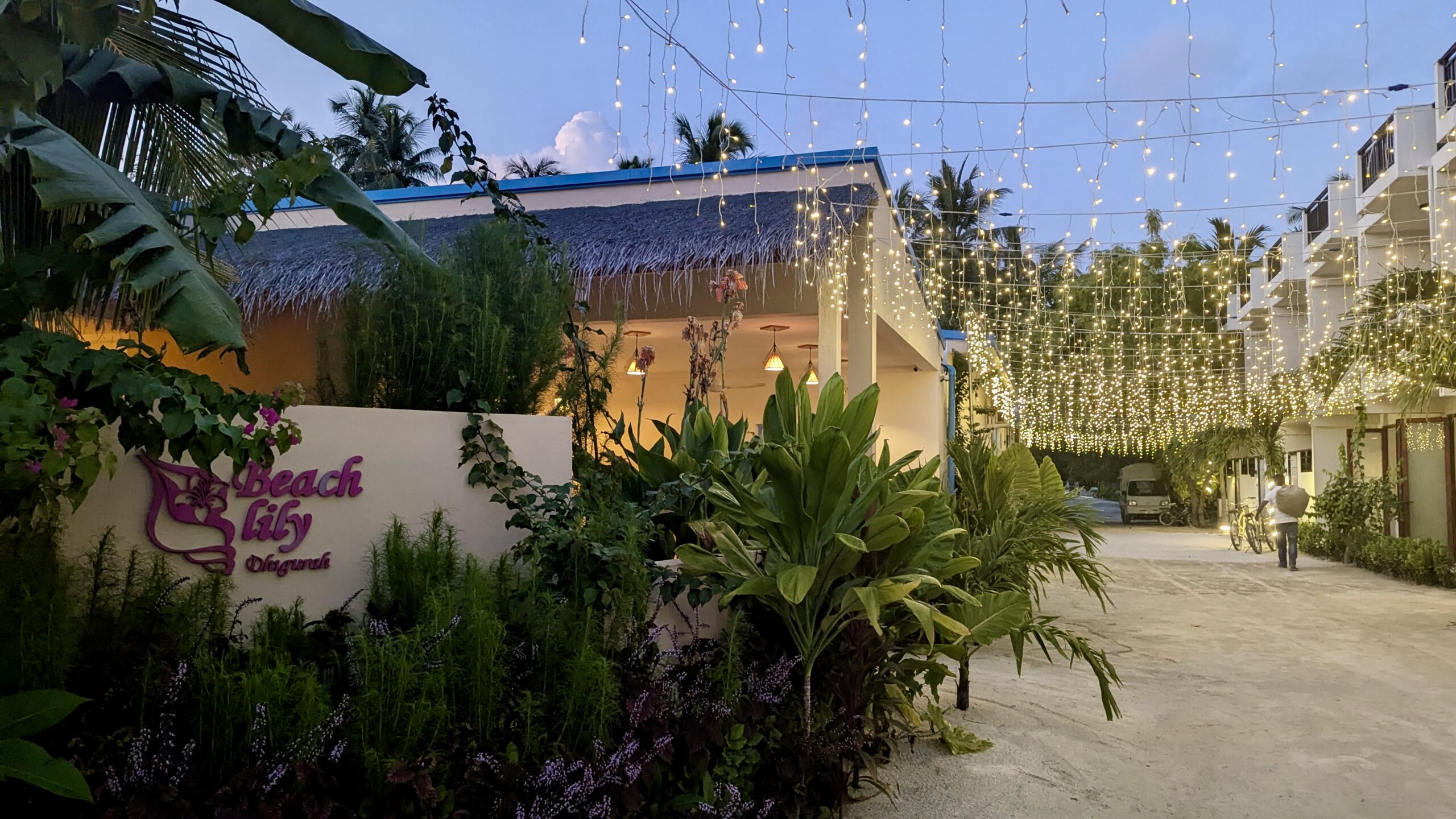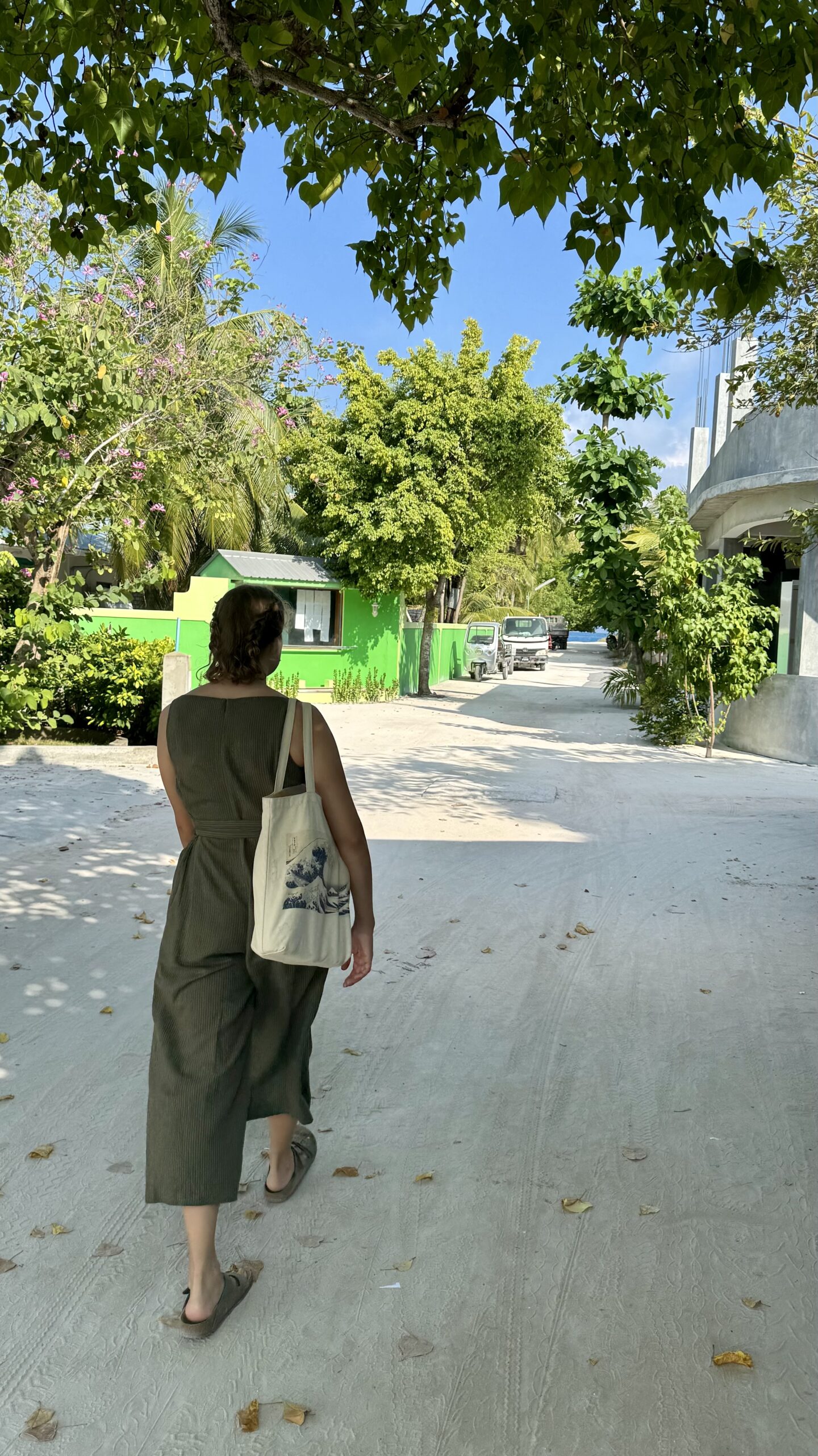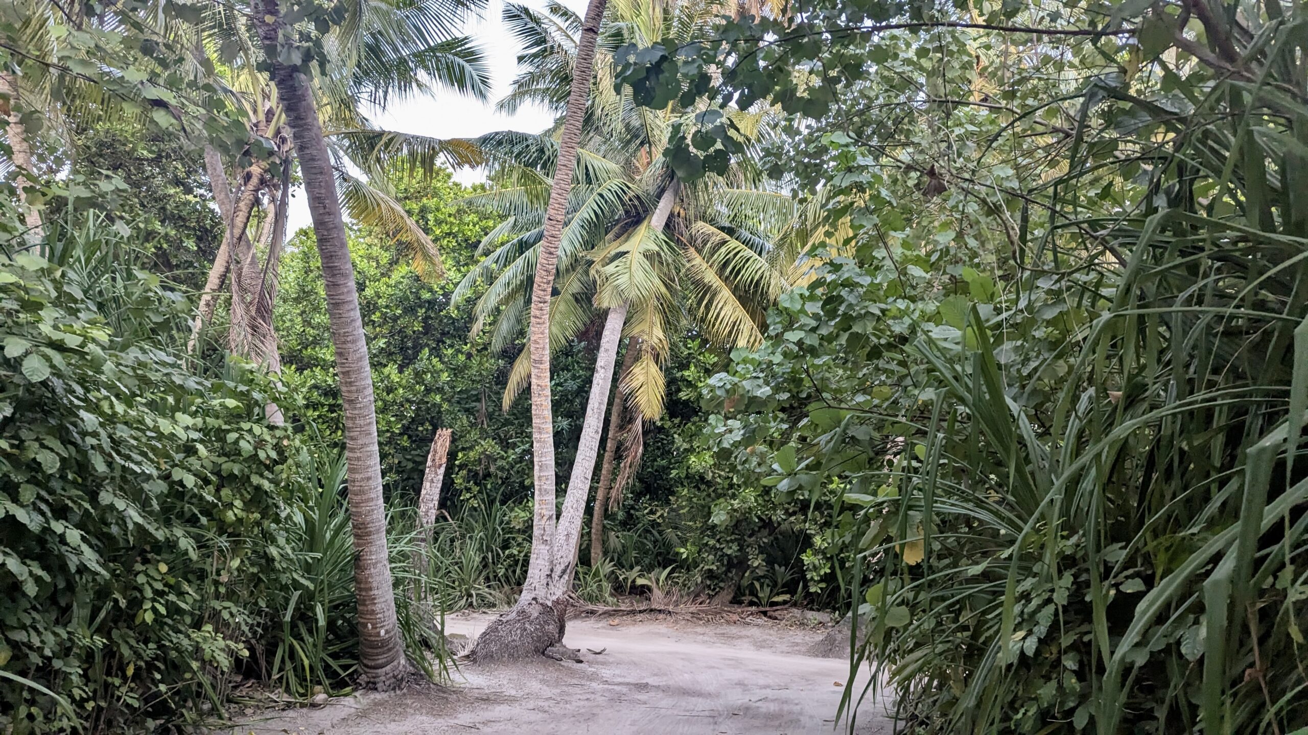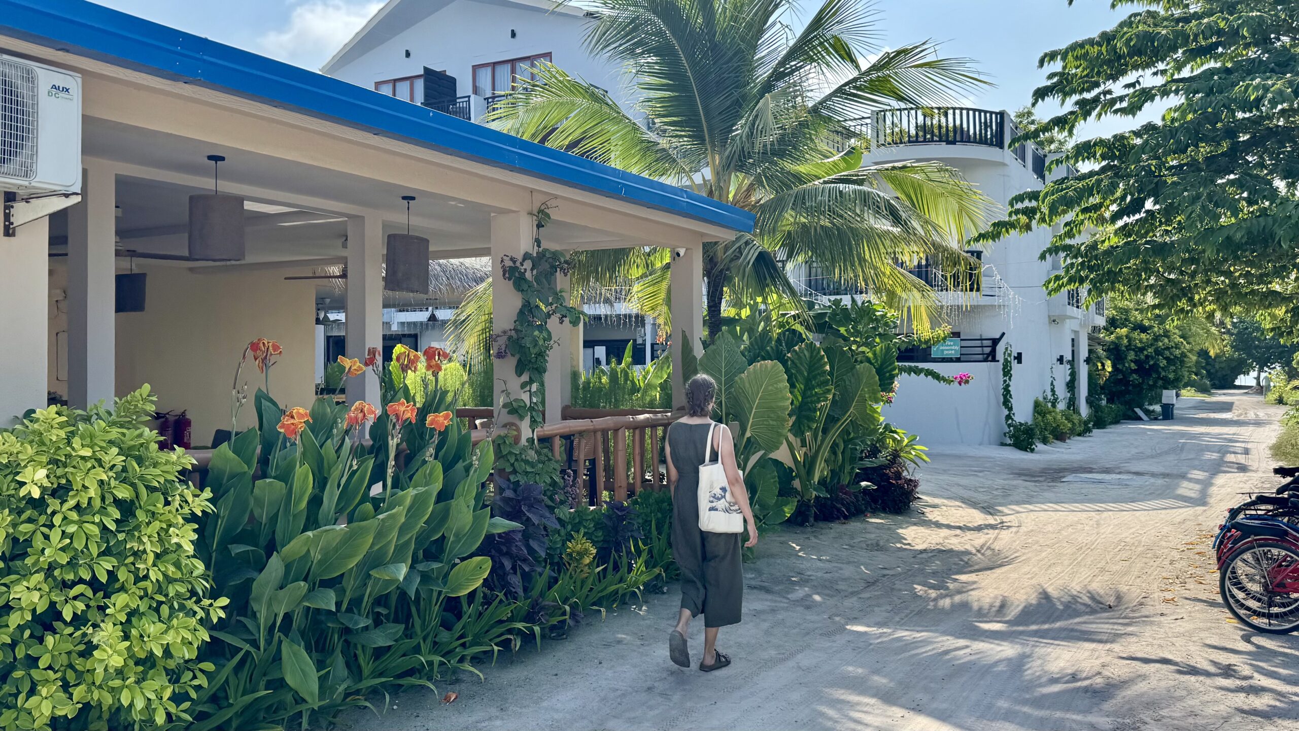 Und dann kamen wir auf Dhigurah an. Mit 3 km Länge auf 275 m Breite ist sie definitiv mehr lang als breit. Und mit 610 Einwohnern weniger dicht besiedelt als Omadhoo, aber deutlich touristischer ausgebaut. Hier reiht sich Hotel an Hotel, an Restaurant, an Hotel. Zudem ist nur ca. 1 km der unteren Spitze richtig besiedelt – je weiter man läuft, desto dschungelartiger wird es und eine lange Sandbank zieht sich nach vorne.