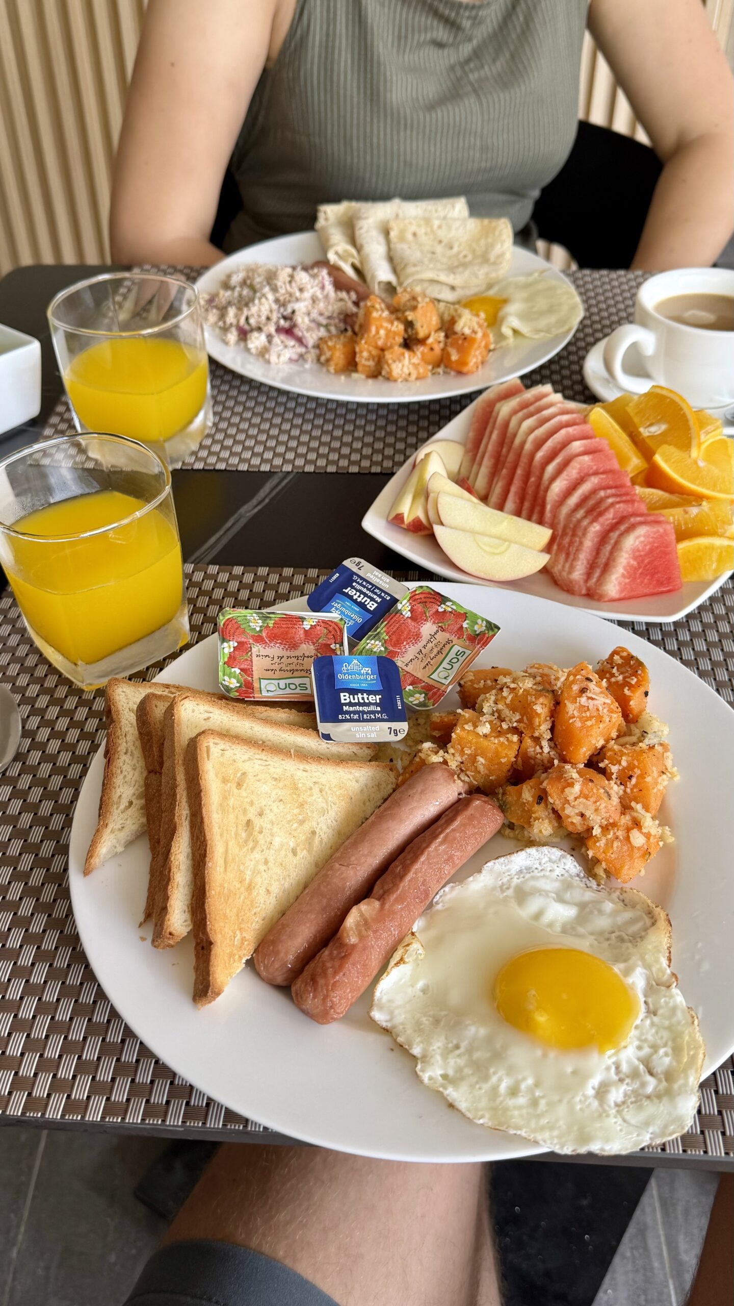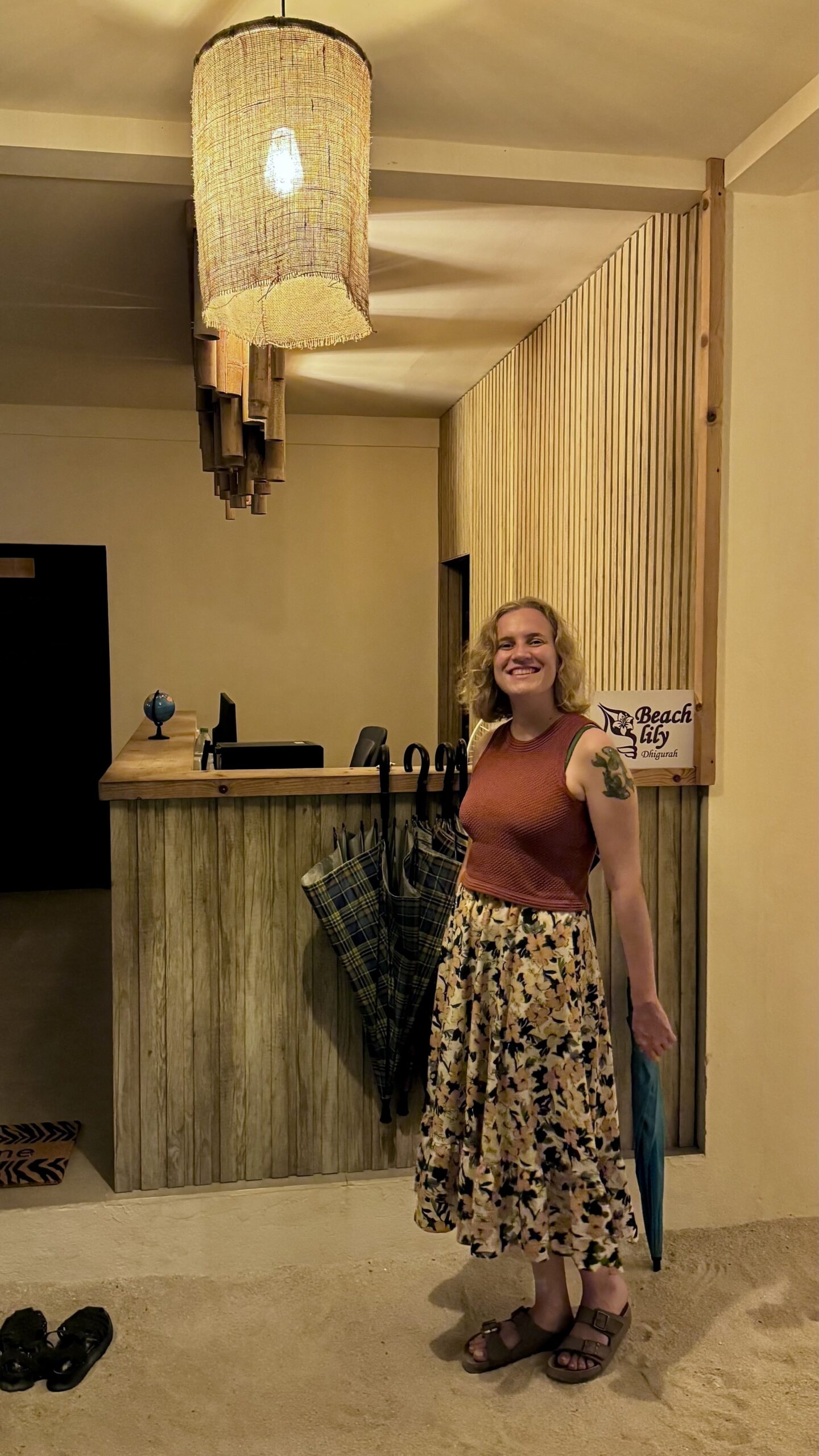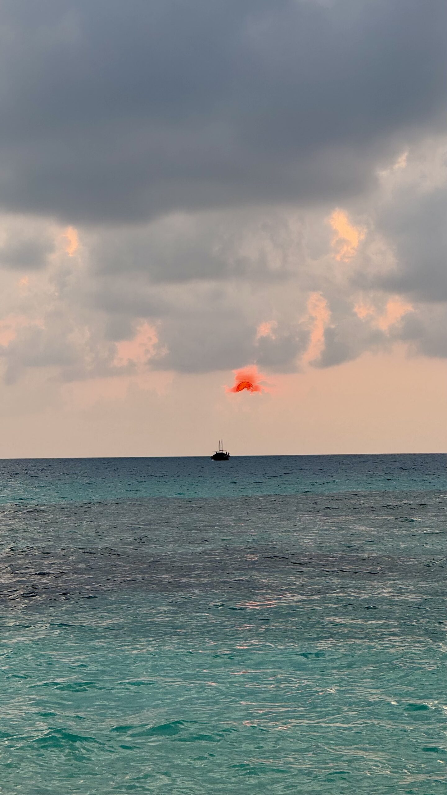 Der Sonnenaufgang war etwas bewölkt, und Sascha schaffte es gerade noch so pünktlich dazu – joggend, mit dem Schnorchel! Ich hätte wohl nur noch ein paar Meter weiterlaufen müssen, um ihn zu finden. Aber gut – zum Glück hatte Sascha ihn entdeckt. Das Schnorcheln lohnte sich an der Stelle des Strands leider nicht. Die Strömung war unglaublich stark und zog einen sehr schnell raus. Selbst ich als geübte Schwimmerin kämpfte mit meinen Flossen gegen den starken Zug und entschied mich nach fünf Minuten, dass ich das lieber lassen sollte.