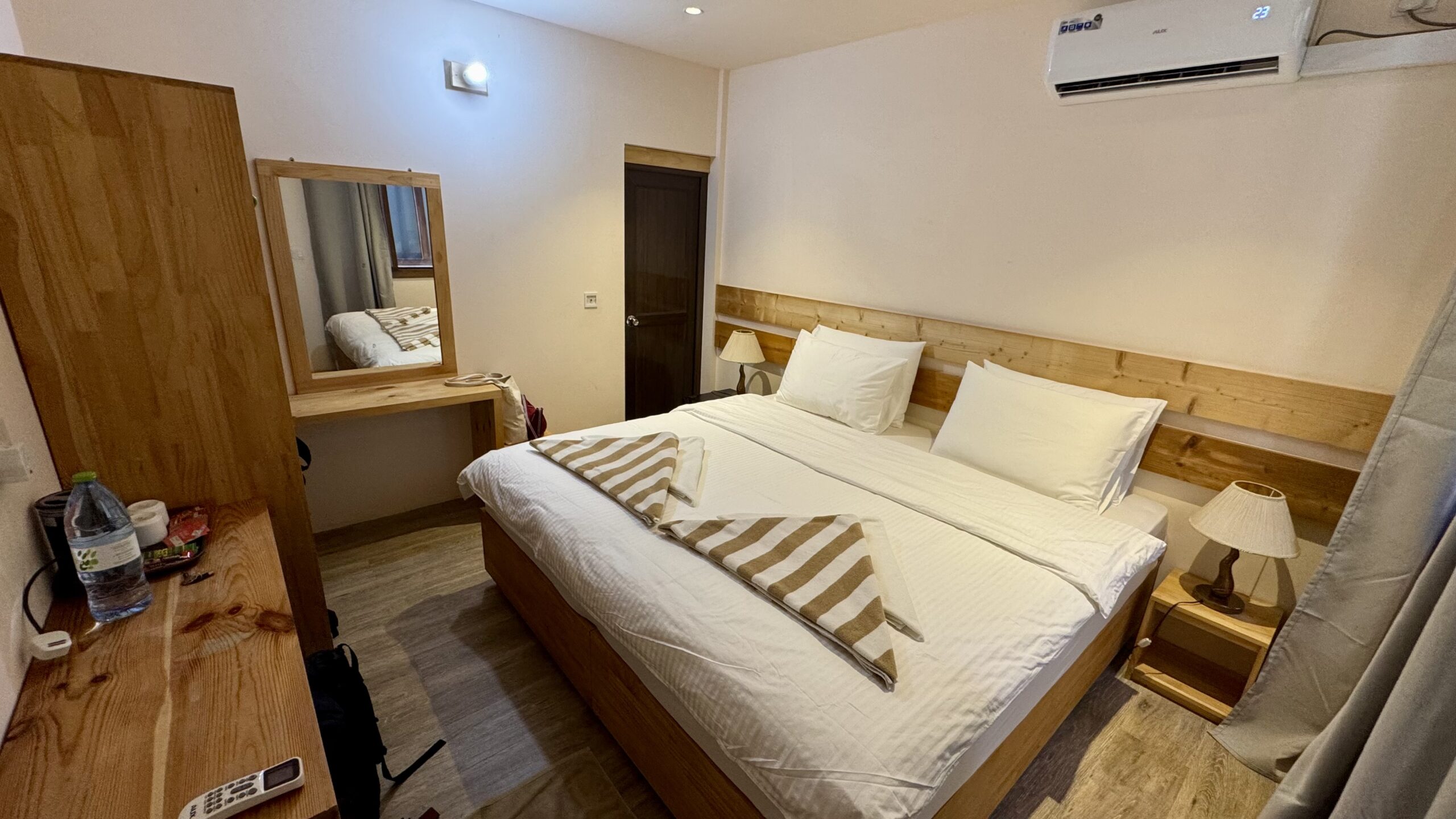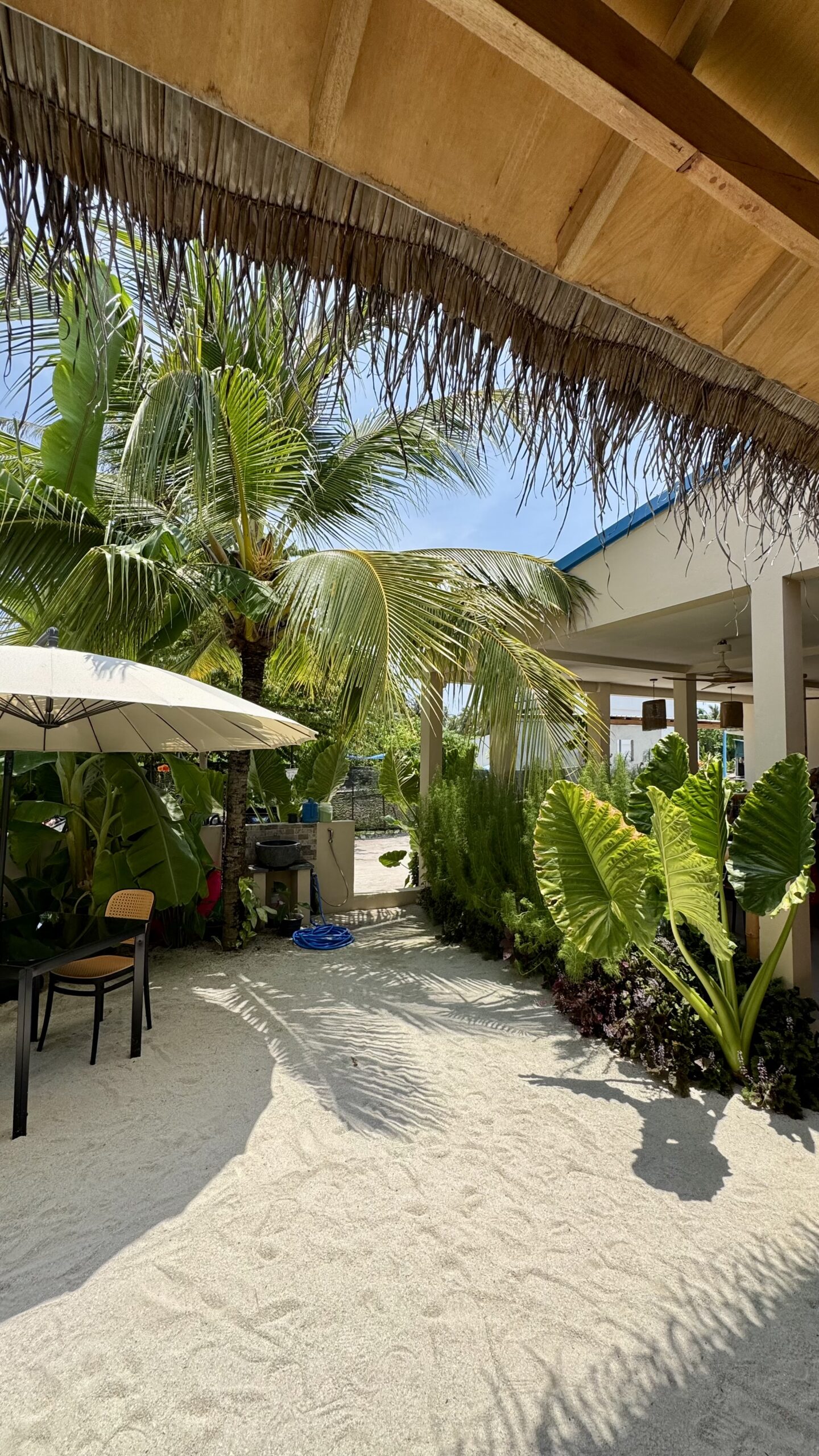 Gegen 16 Uhr checkten wir in unserer Unterkunft ein – ein kleines Hotel, das noch keine 4 Monate geöffnet hat, aber tollen Komfort bietet und wunderschön gestaltet ist. Mit dem ganzen Grün, das hier vom Hotelbesitzer selbst aufgezogen wurde, verstecken sich die Türen zu den Zimmern hinter großen Blättern von kleinen Palmen. Die Anlage ist wunderschön gepflegt und wir konnten es hier sehr genießen.