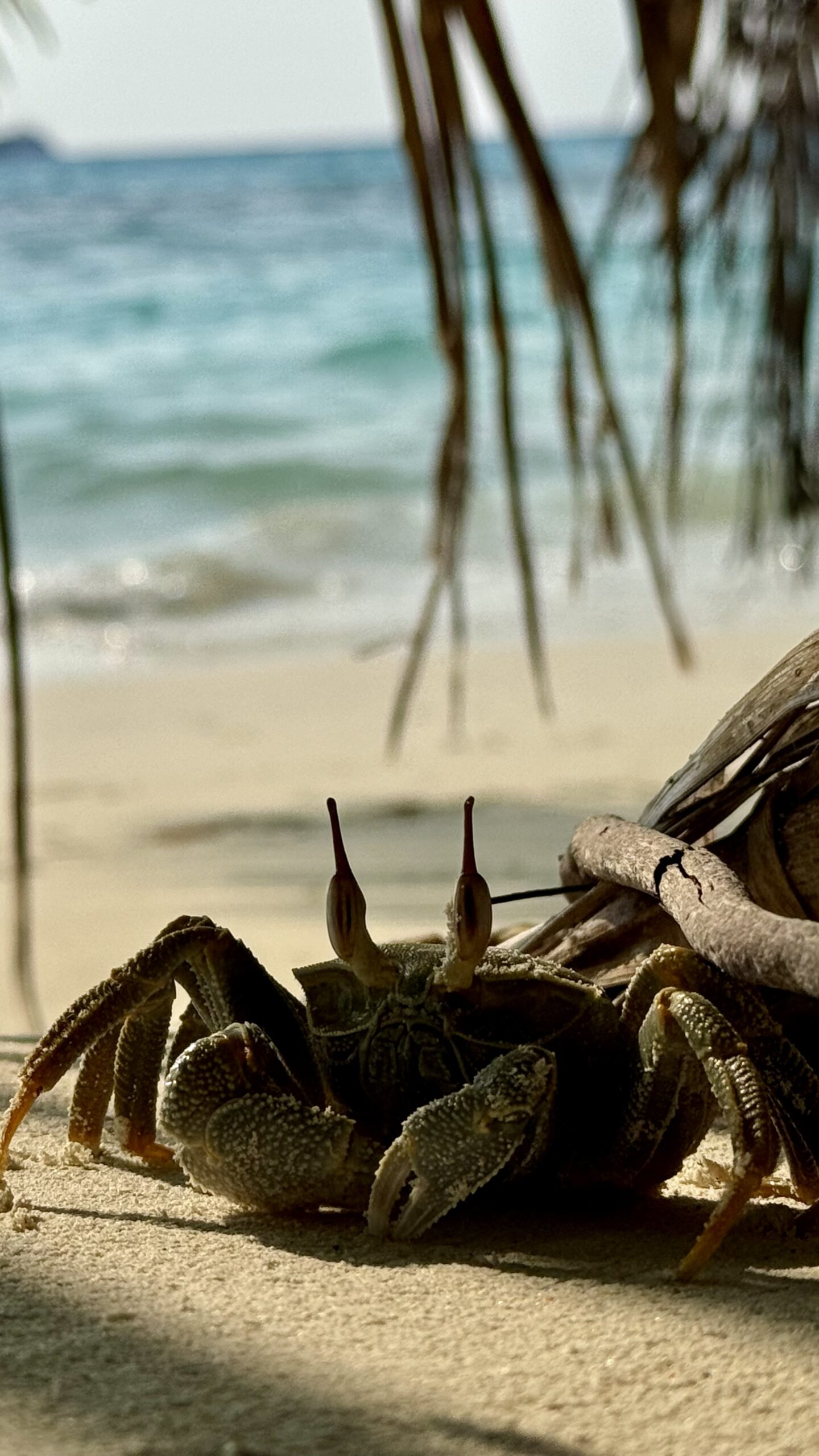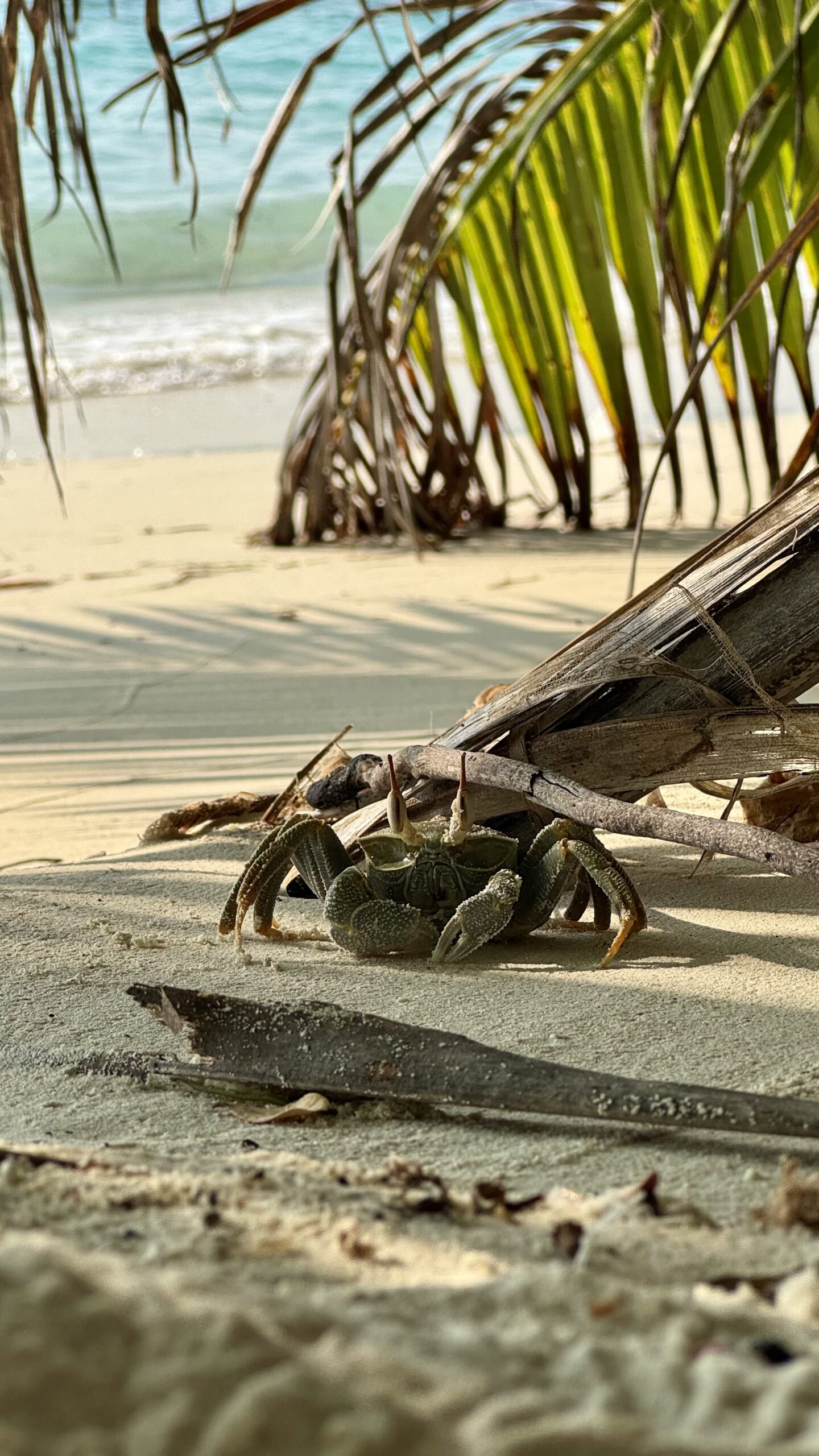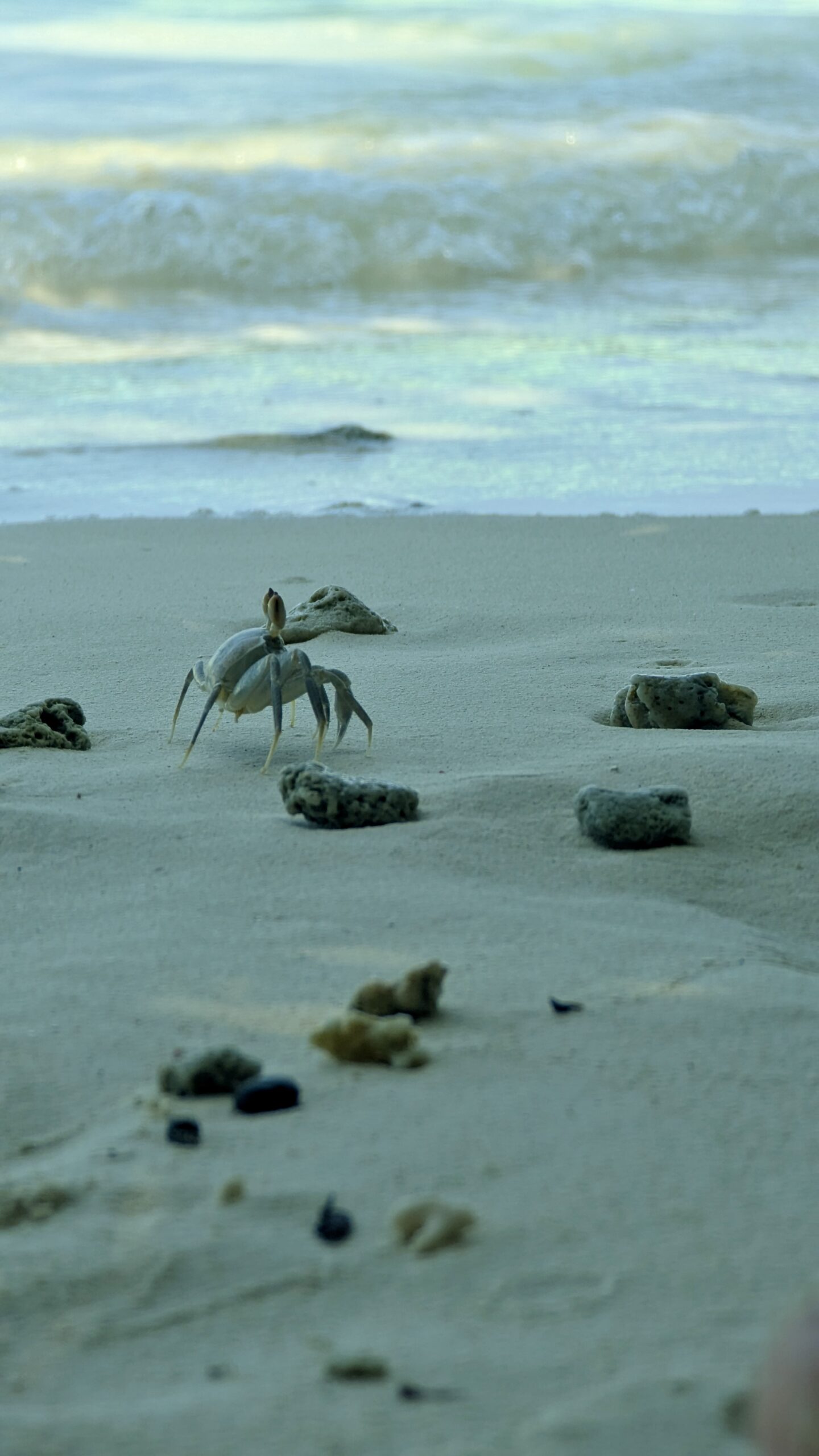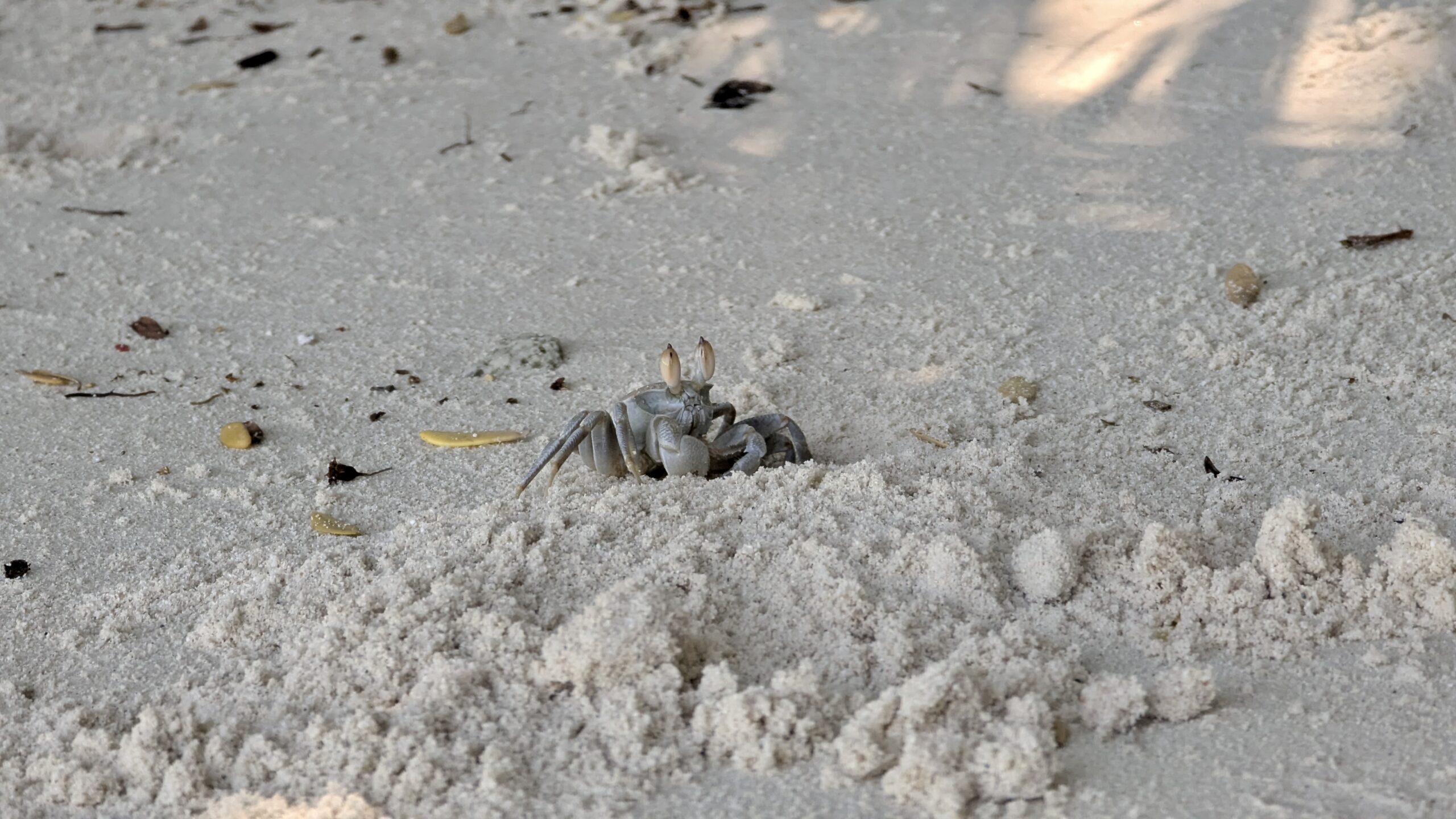 Um 4.45 Uhr klingelte unser Wecker und um kurz nach 5 packten wir Flossen und Schnorchel ein. Bei lauen Temperaturen von 28° und ziemlicher Dunkelheit marschierten wir die 1,5 km lange Distanz am Strand entlang in Richtung Sandbank. Mit der Ebbe konnte man super bequem laufen. Hin und wieder musste man lediglich darauf achten, nicht auf flüchtende Krabben oder Einsiedlerkrebse zu treten.