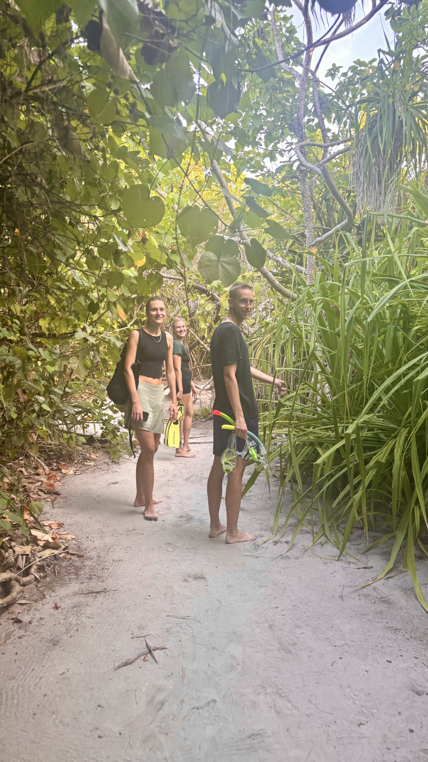 Wir kamen leicht ins Gespräch. Mit am lustigsten war wohl die Tatsache, dass wir alle aus dem Ländle kommen. Nova wohnt keine 15 Minuten von uns entfernt in Bad Cannstatt, Caro kommt ursprünglich aus Stetten, studiert aber mittlerweile in München. Wir tauschten uns über alles Mögliche aus – unsere Erfahrungen auf den Malediven, und auch, dass Caro und Nova sich erst zwei Wochen vorher in Sri Lanka kennengelernt hatten und Caro sich spontan entschlossen hatte, Nova auf die Malediven zu folgen.