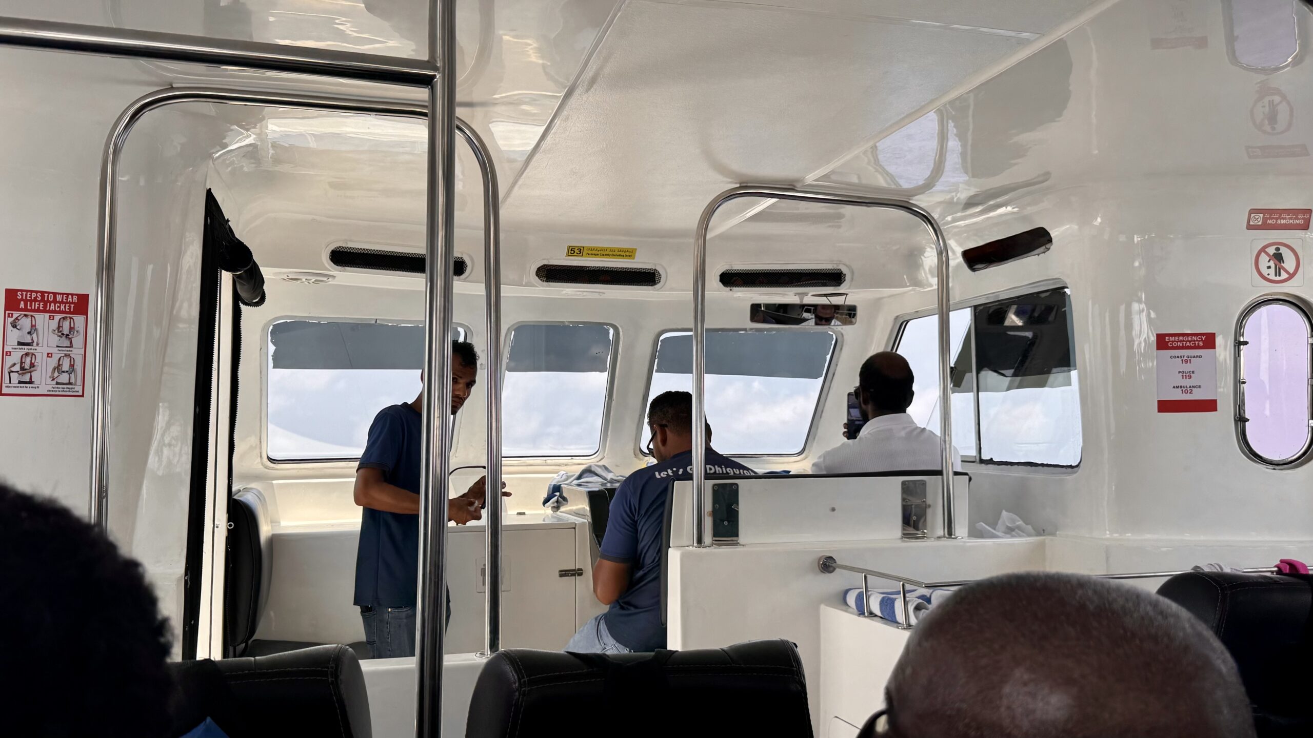 Für uns ging es am Donnerstag mit der Local Ferry gegen 10 Uhr morgens los, Hassan brachte uns mit seinem Elektro-Golfkart zur Anlegestelle, wo schon viele andere warteten. Da die Fähre nur zweimal die Woche fährt, sammeln sich neben vielen Einheimischen auch einige Touristen an, die den günstigen Fährverkehr gerne nutzen.